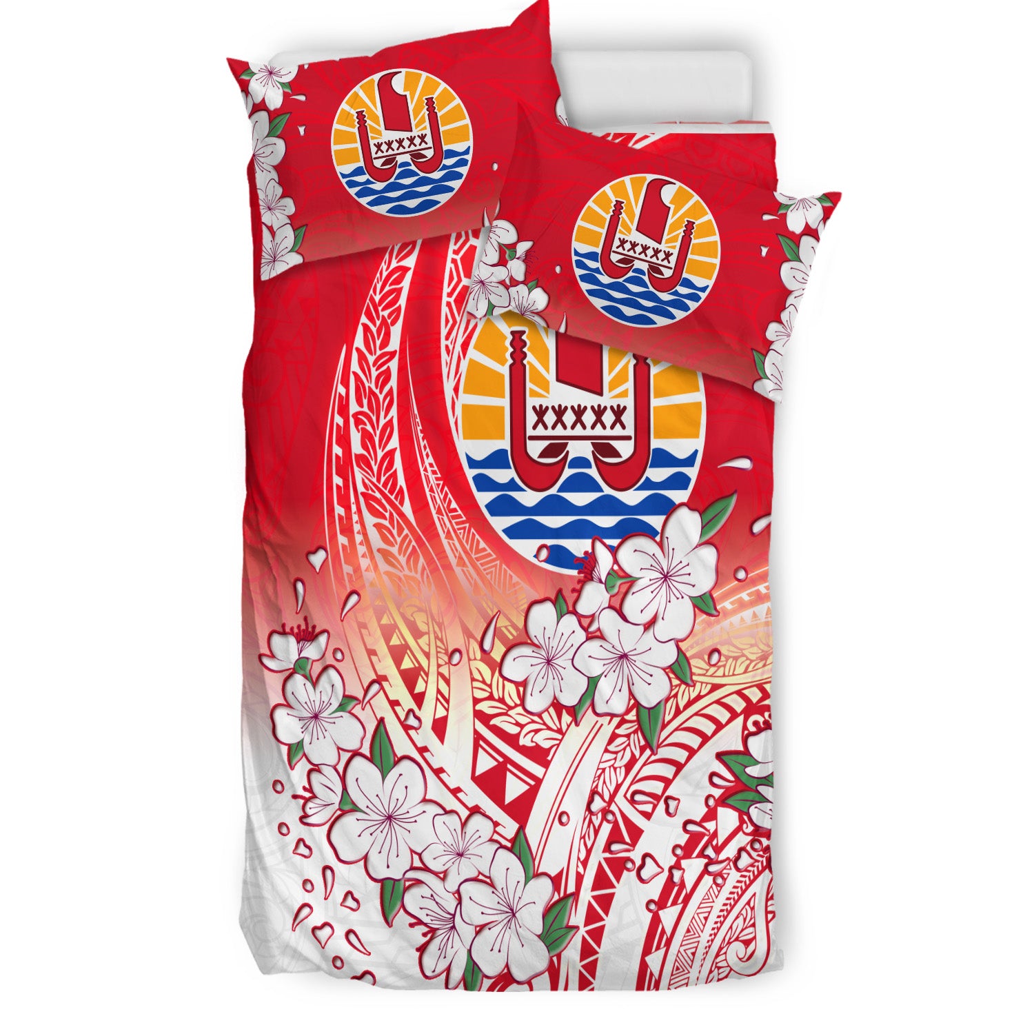 Tahiti Bedding Set Polynesian Pattern Style White Flowers