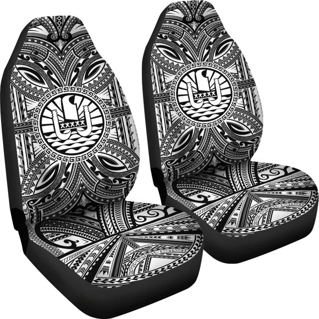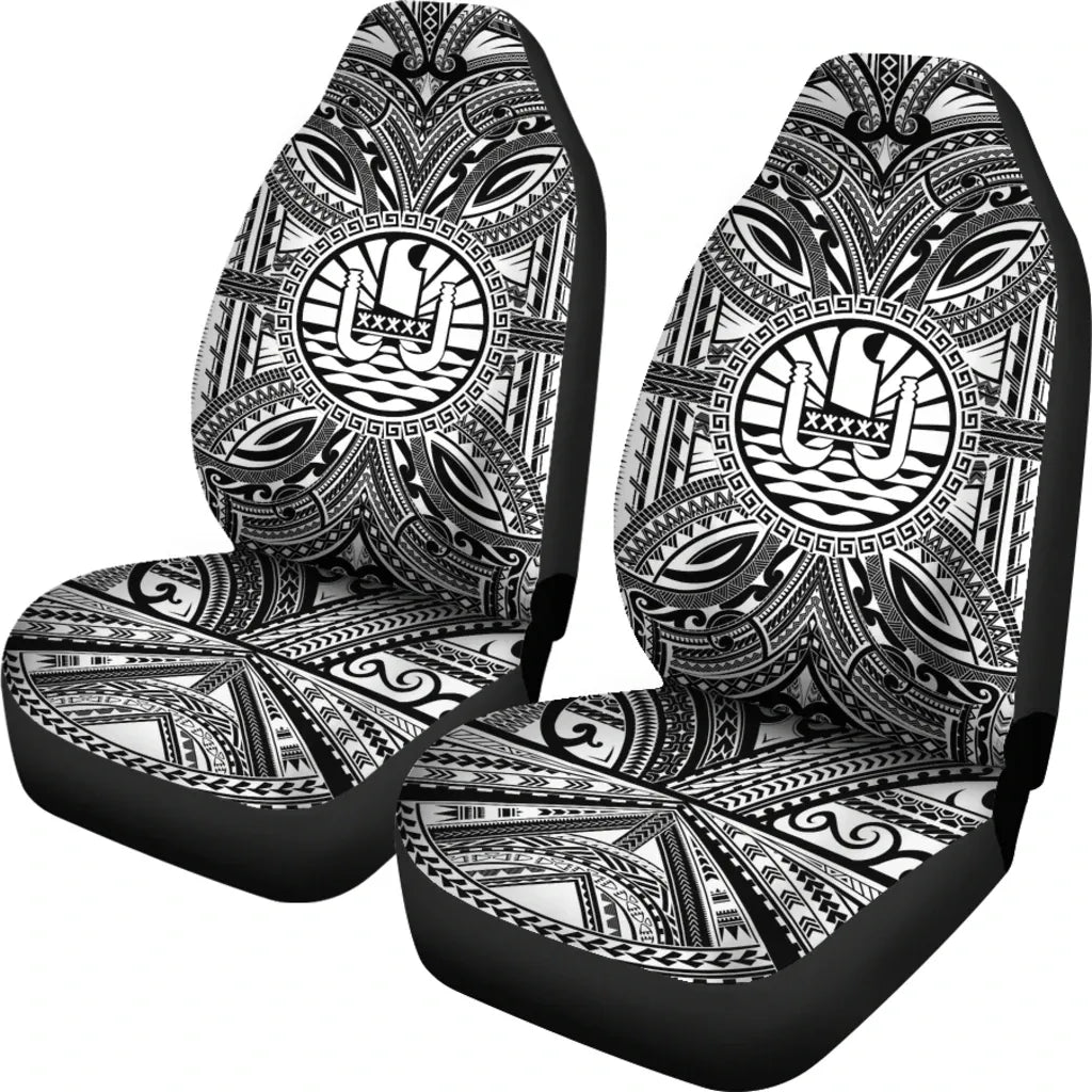Tahiti Car Seat Cover - Tahiti Coat Of Arms Polynesian White Black