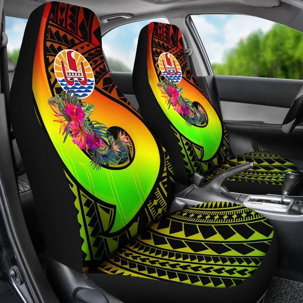 Tahiti Car Seat Covers - Polynesian Hook And Hibiscus (Reggae)