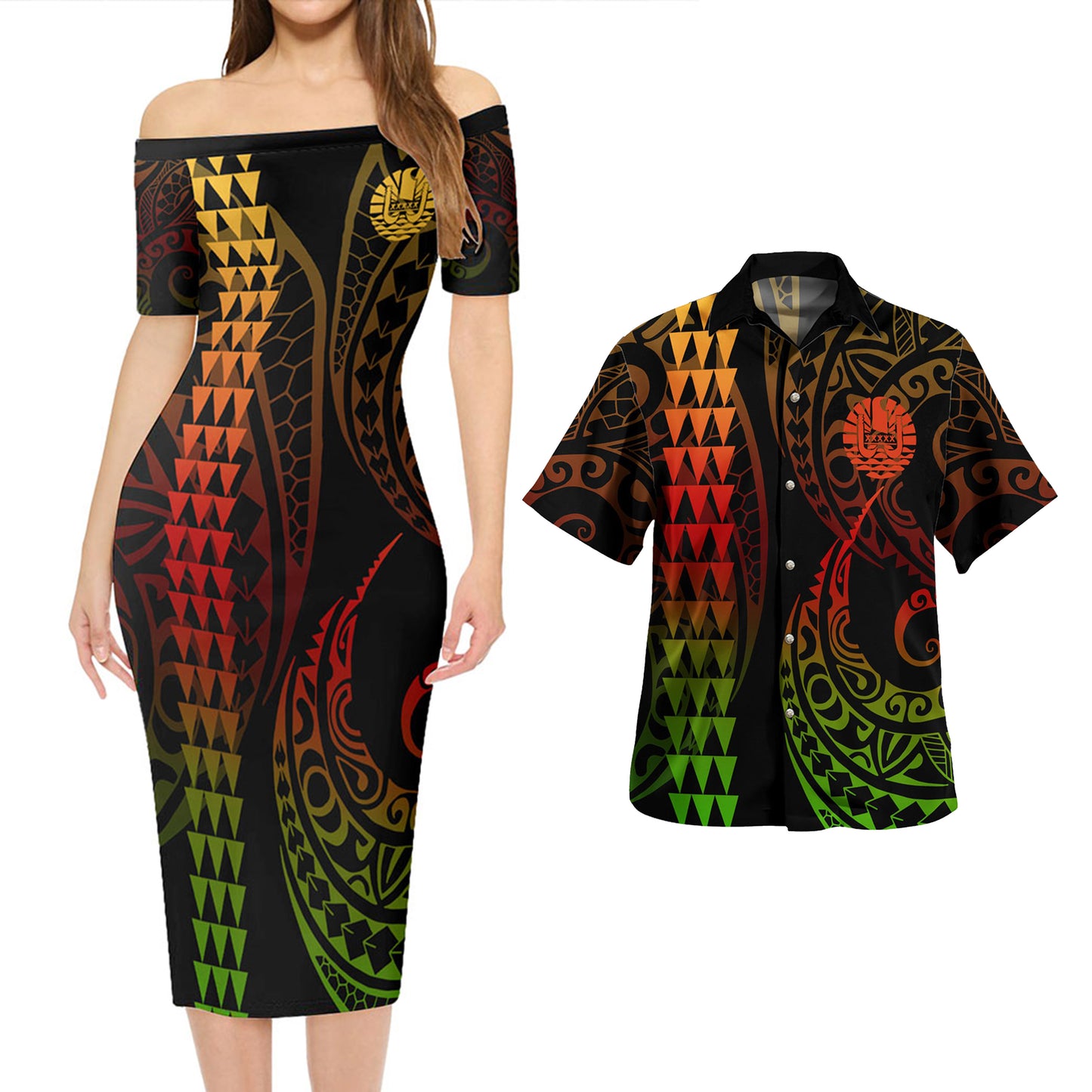 Tahiti Combo Short Sleeve Dress And Shirt Kakau Style Reggae