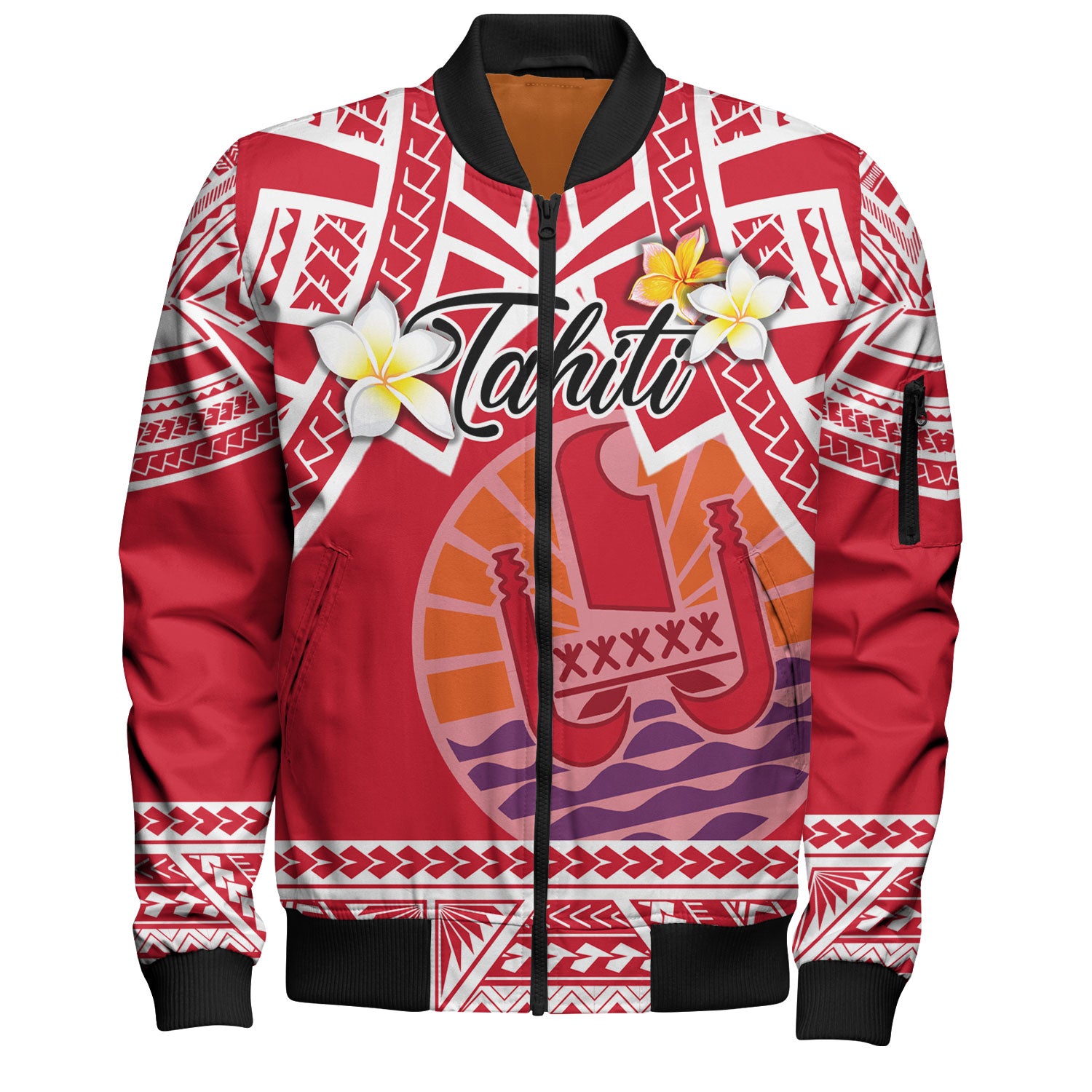 Tahiti Bomber Jacket Tahitian Plumeria Flowers Mix Tribal Patterns