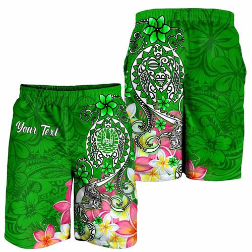 Tahiti Custom Personalised Men Shorts - Turtle Plumeria (Green)