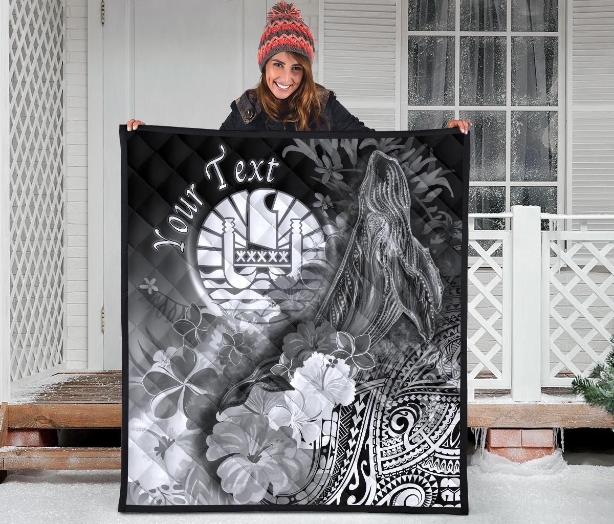 Tahiti Custom Personalised Premium Quilt - Humpback Whale with Tropical Flowers (White)