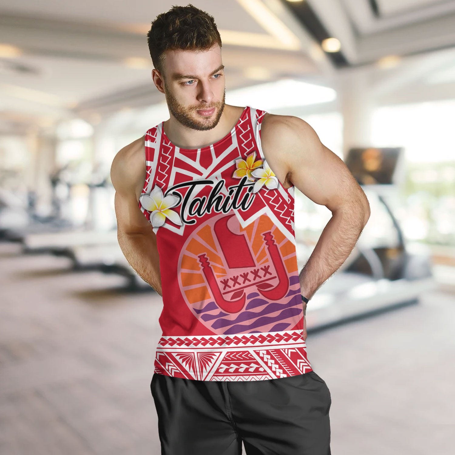 Tahiti Tank Top Tahitian Plumeria Flowers Mix Tribal Patterns