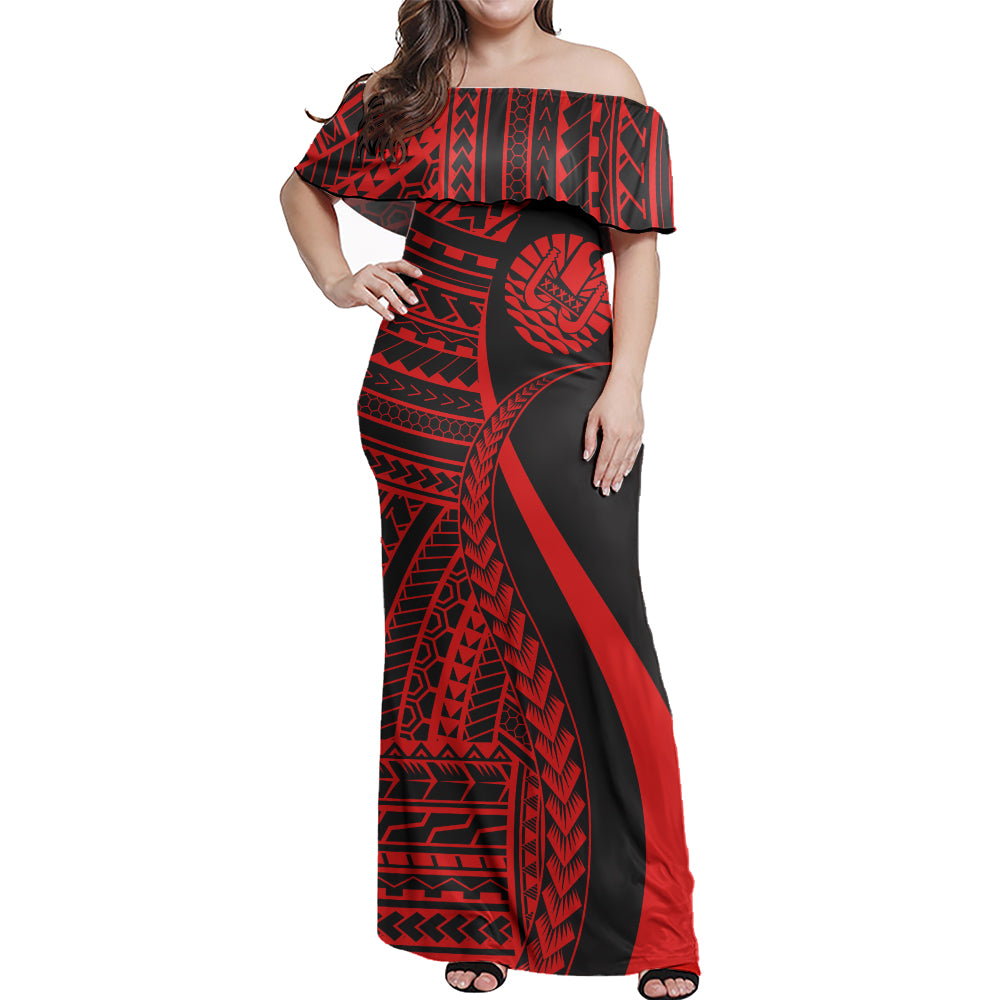 Tahiti Custom Personalised Woman Off Shoulder Long Dress Polynesian Tentacle Tribal Pattern