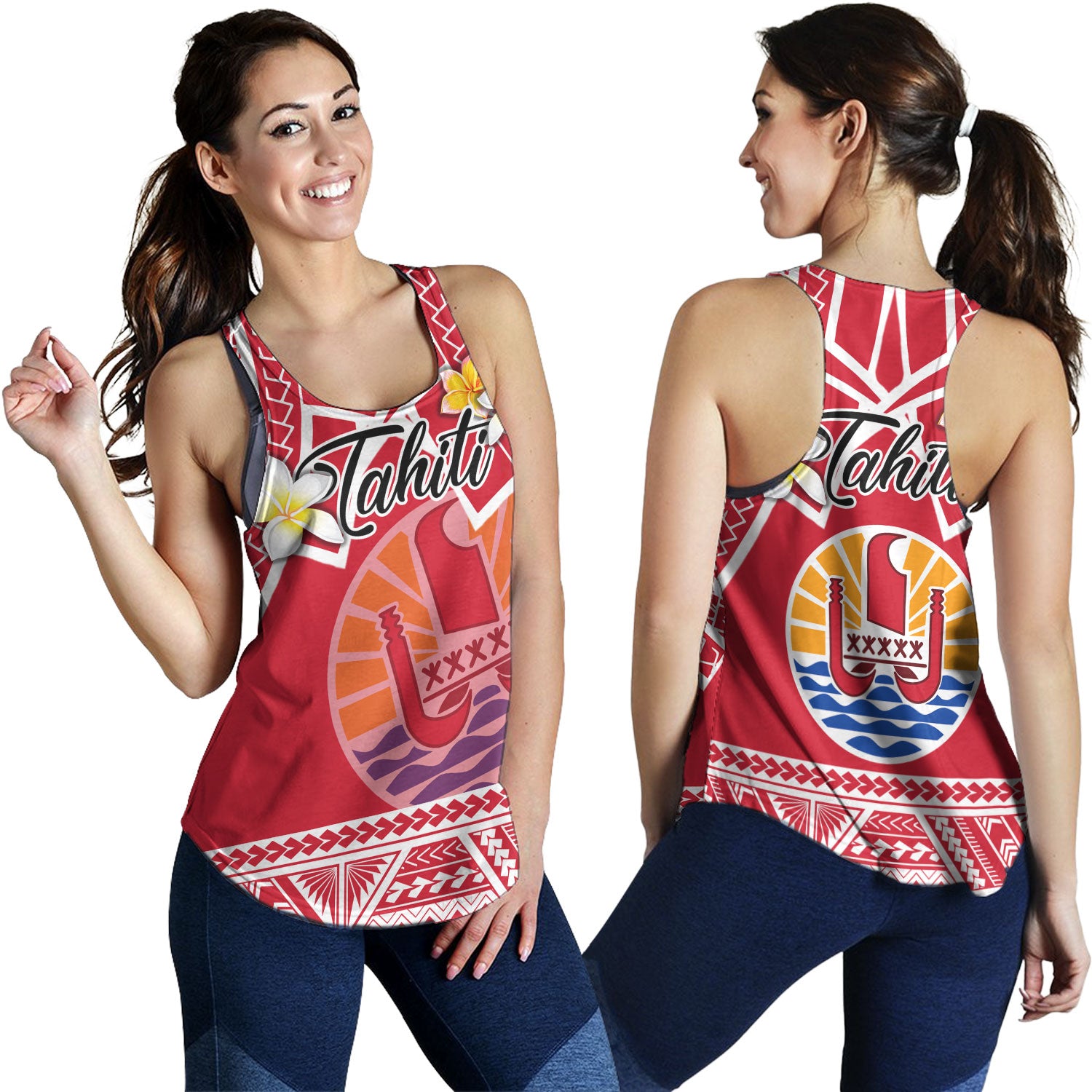 Tahiti Women Tank Tahitian Plumeria Flowers Mix Tribal Patterns