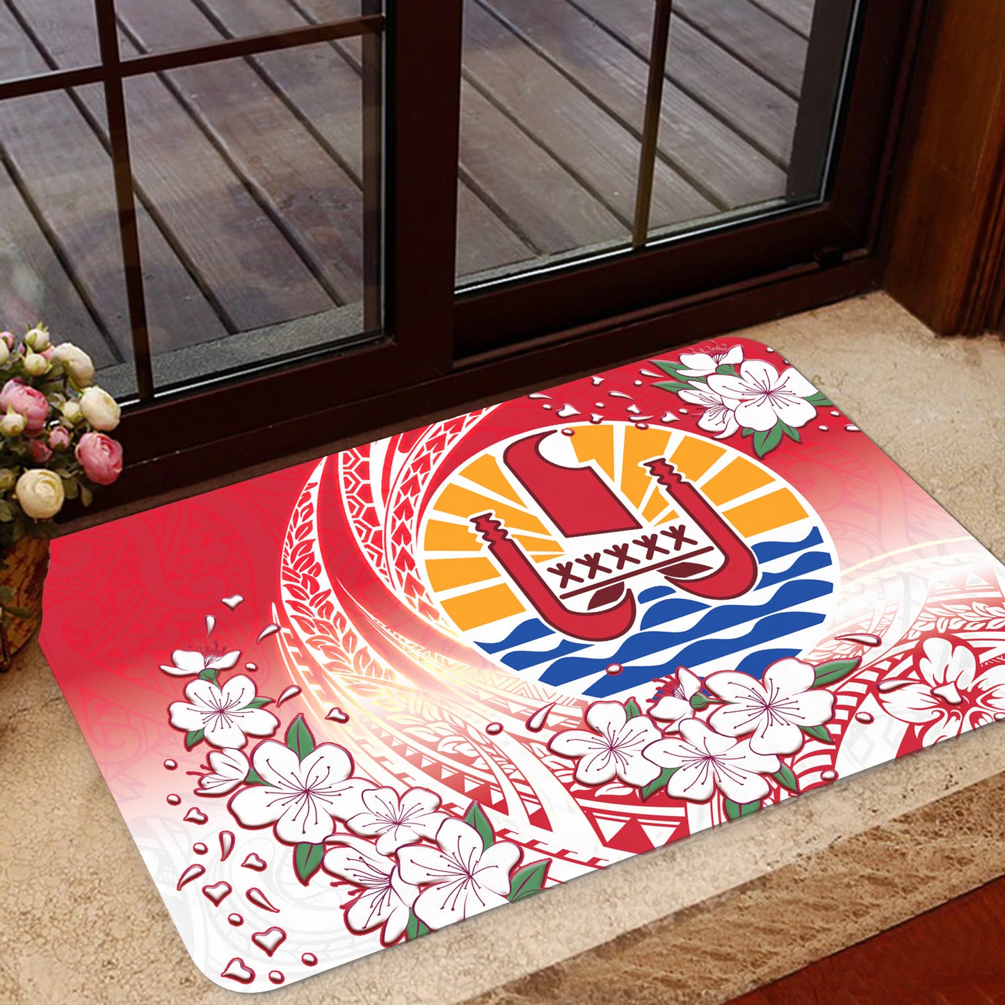 Tahiti Door Mat Polynesian Pattern Style White Flowers