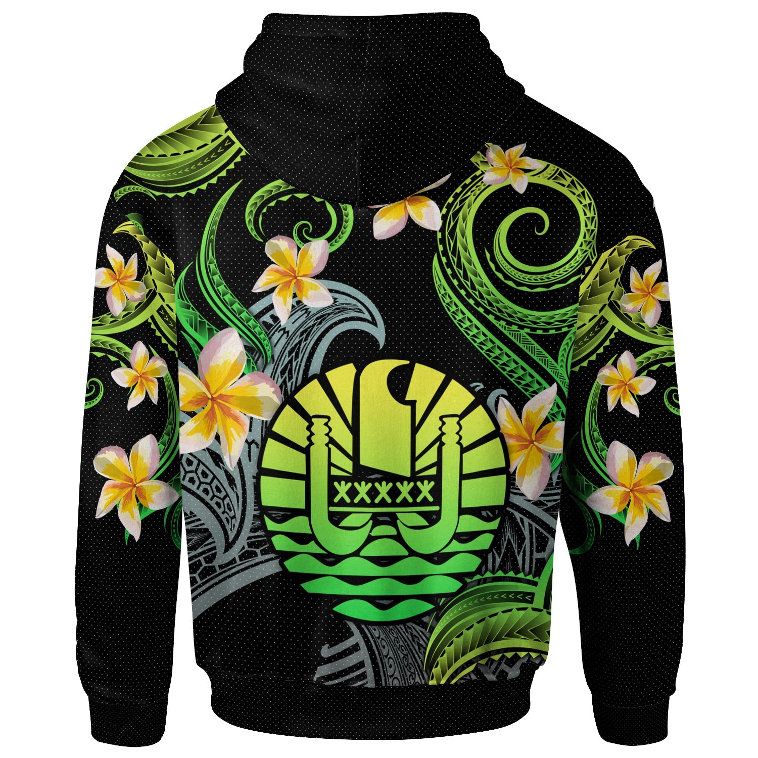 Tahiti Hoodie - Custom Personalised Polynesian Waves with Plumeria Flowers (Green)