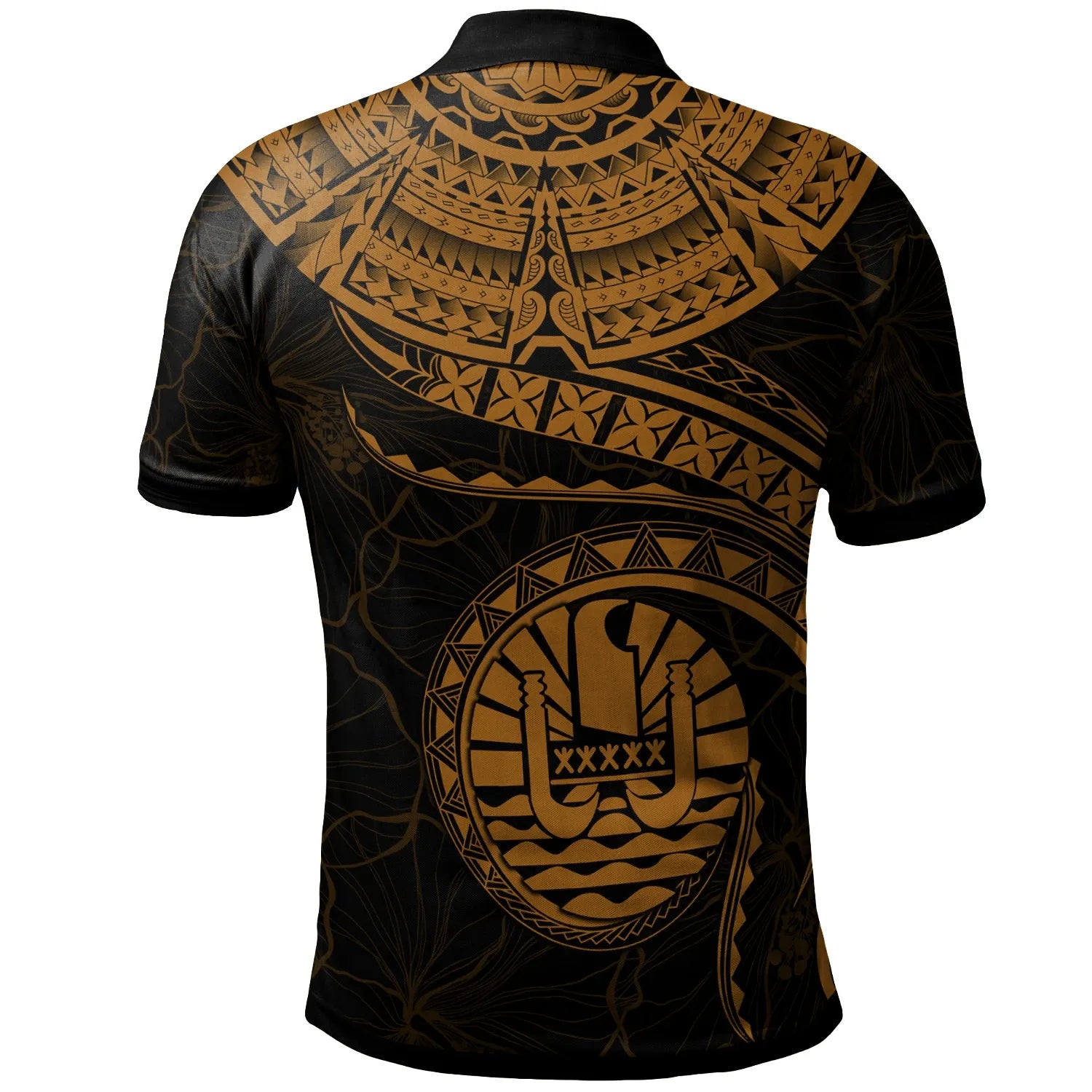 Tahiti Polynesian Polo Shirt - Tahiti Waves (Golden)