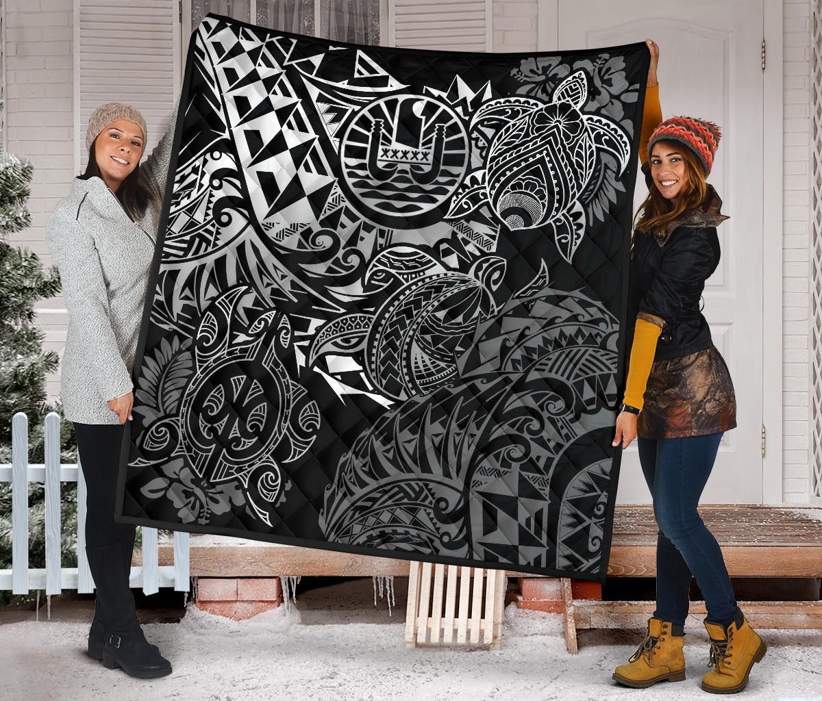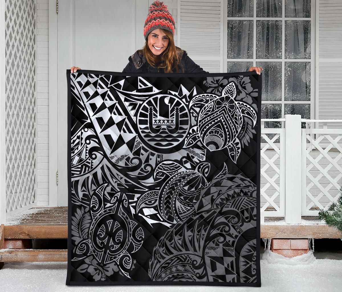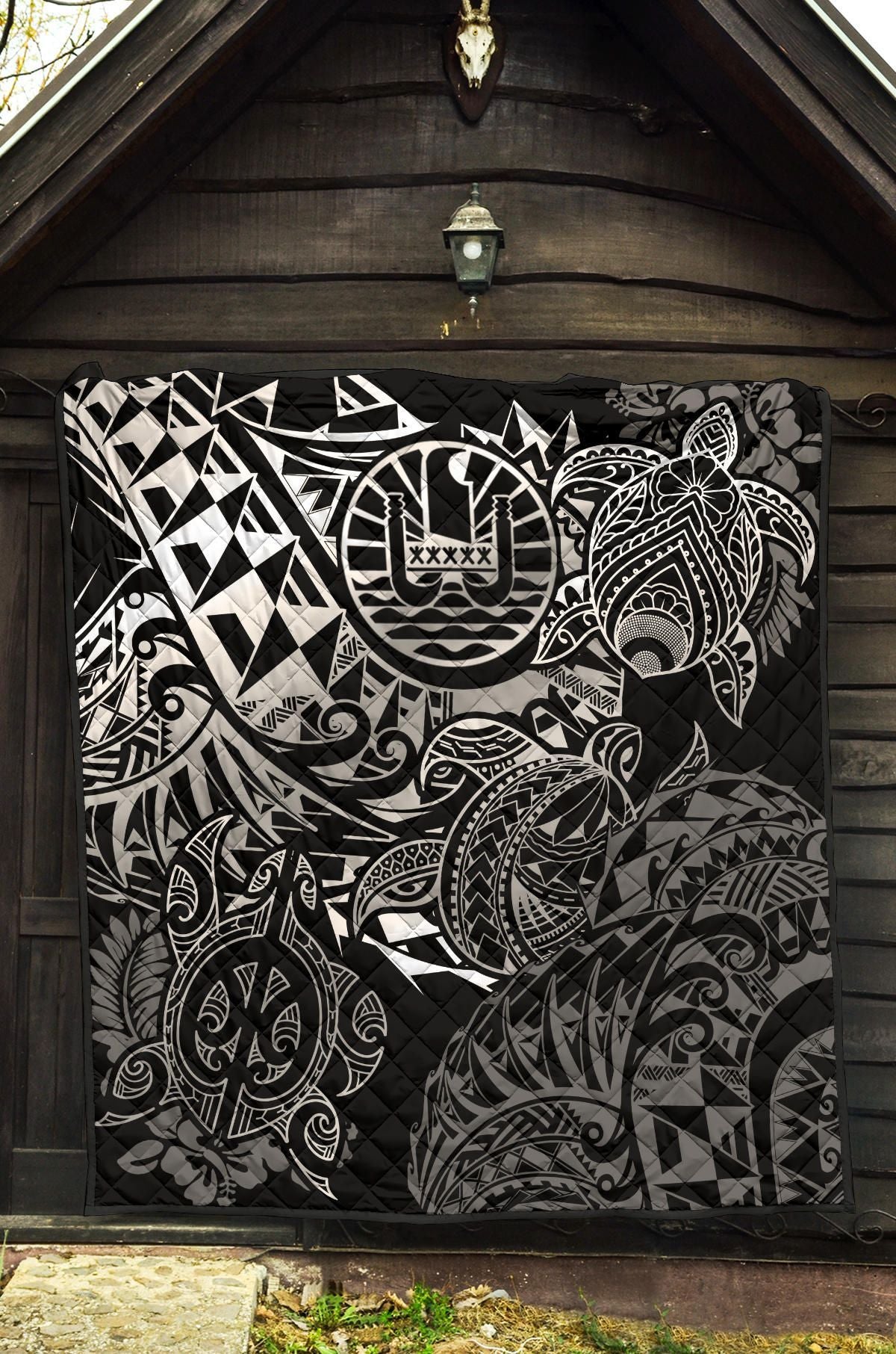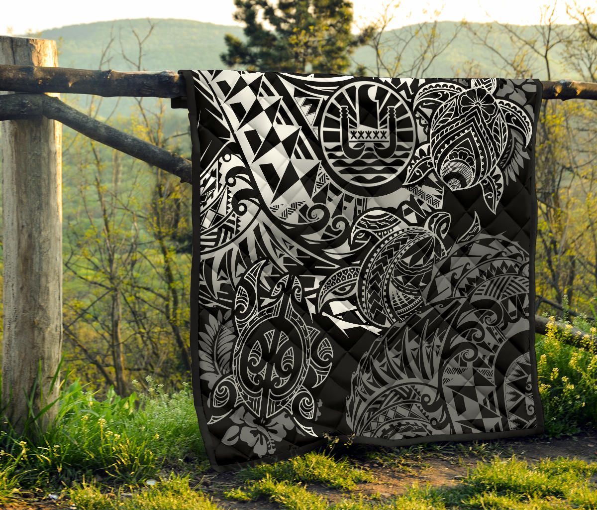 Tahiti Polynesian Premium Quilt - White Turtle Hibiscus Flowing