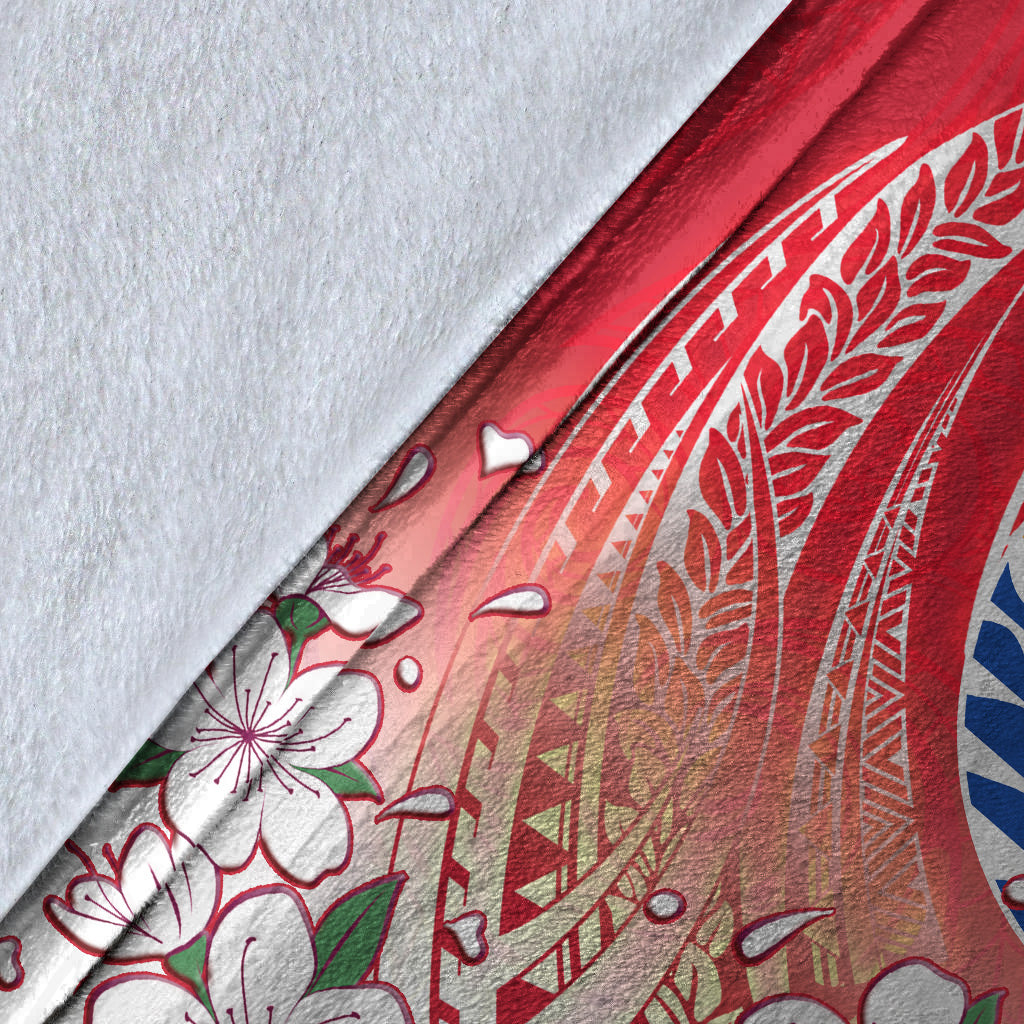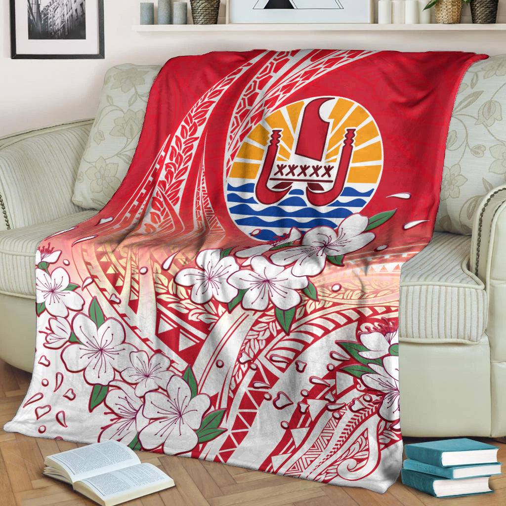Tahiti Premium Blanket Polynesian Pattern Style White Flowers