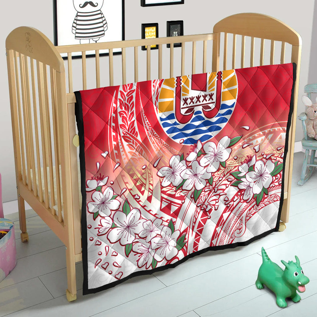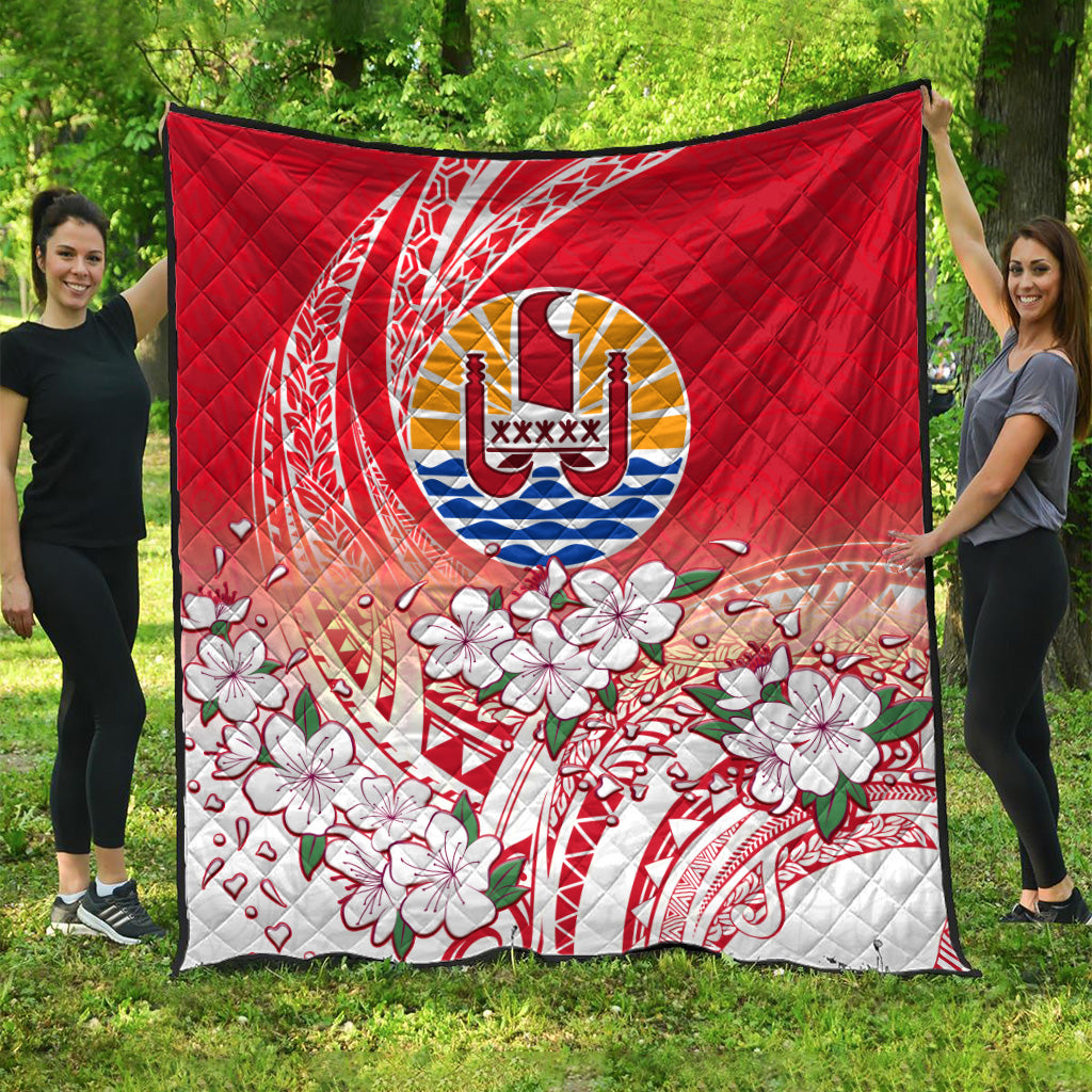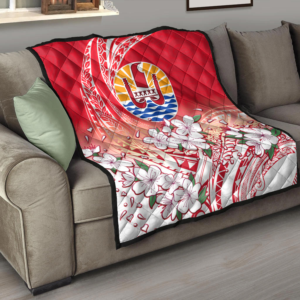 Tahiti Premium Quilt Polynesian Pattern Style White Flowers