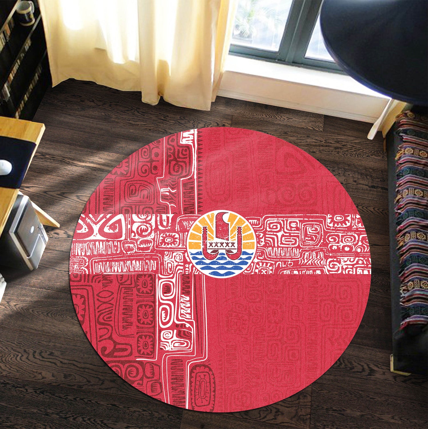 Tahiti Round Rug French Polynesia Pattern Vintage Style