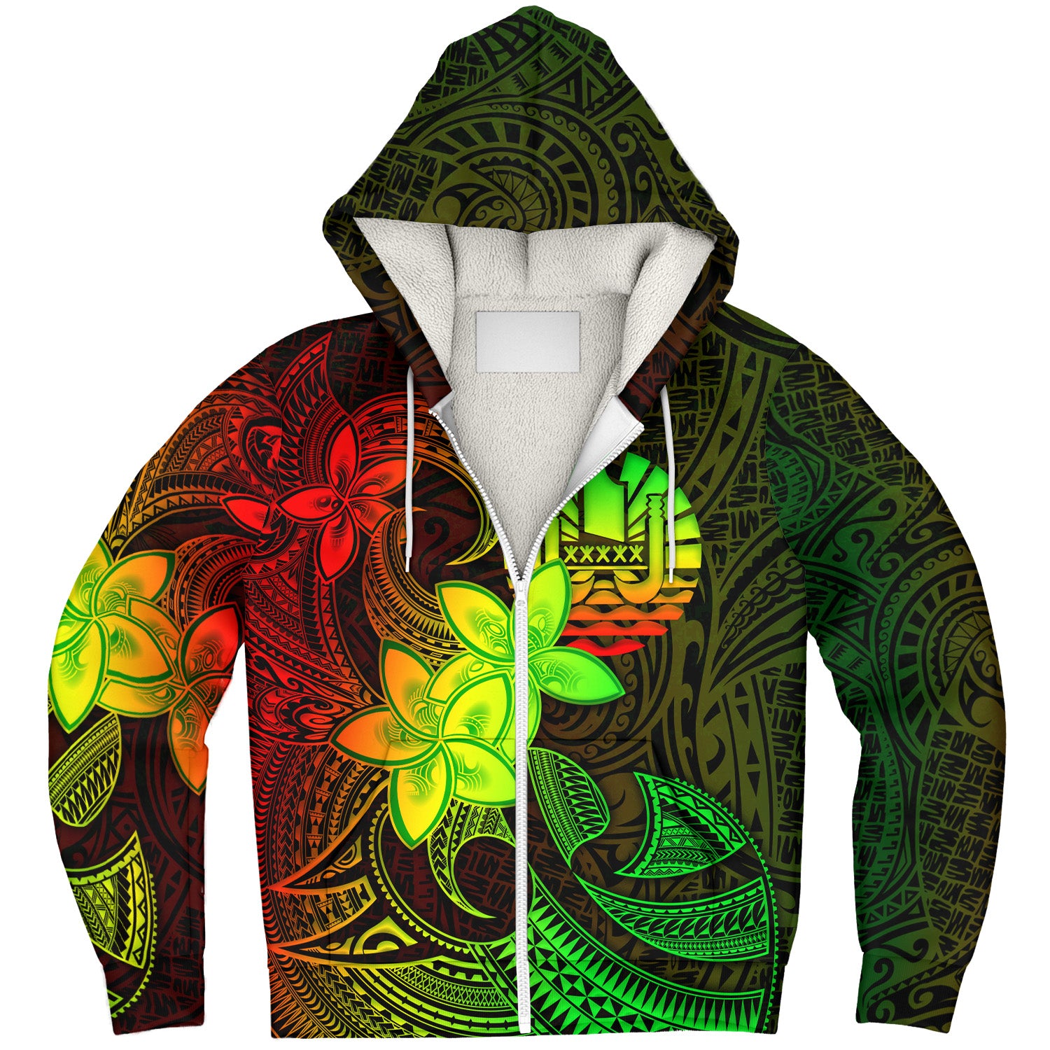 Tahiti Sherpa Hoodie Plumeria Flowers Vintage Style Reggae Colors
