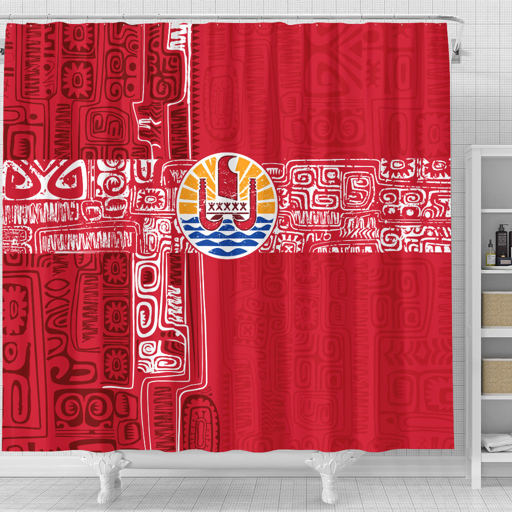 Tahiti Shower Curtain French Polynesia Pattern Vintage Style