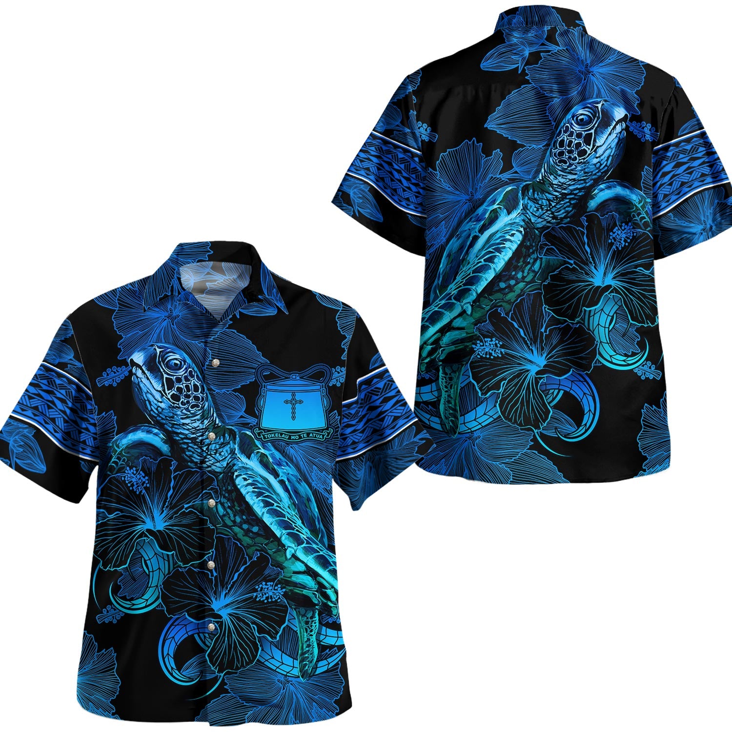 Tokelau Combo Puletasi And Shirt Sea Turtle With Blooming Hibiscus Flowers Tribal Blue