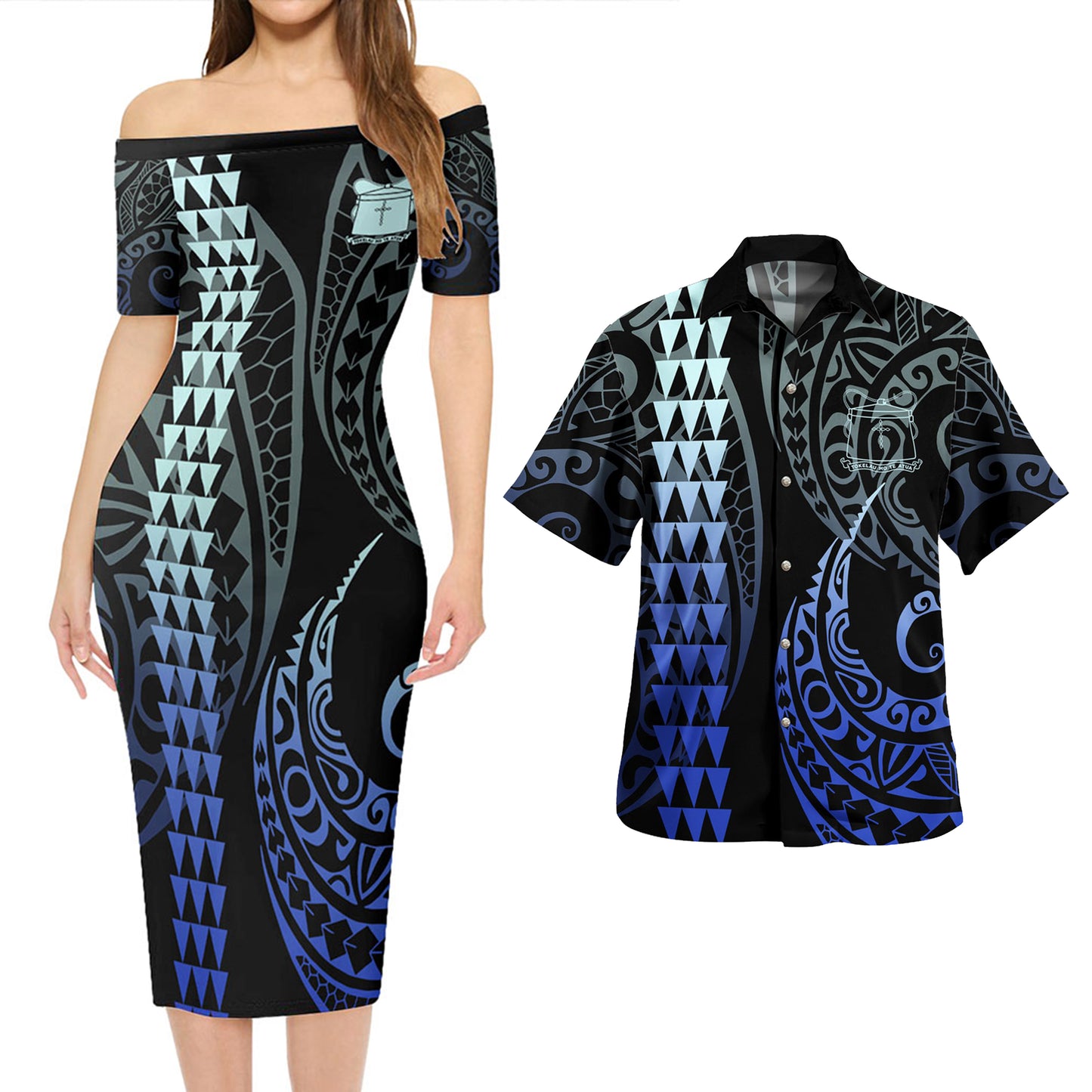Tokelau Combo Short Sleeve Dress And Shirt Kakau Style Gradient Blue