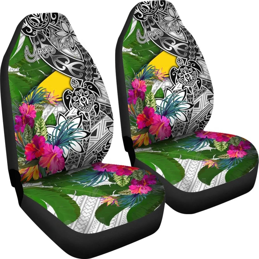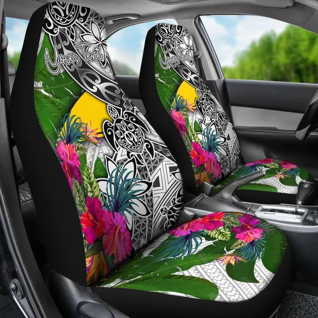 Tokelau Custom Personalised Car Seat Covers White - Turtle Plumeria Banana Leaf