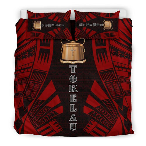 Tokelau Duvet Cover Set - Polynesian Tattoo Red