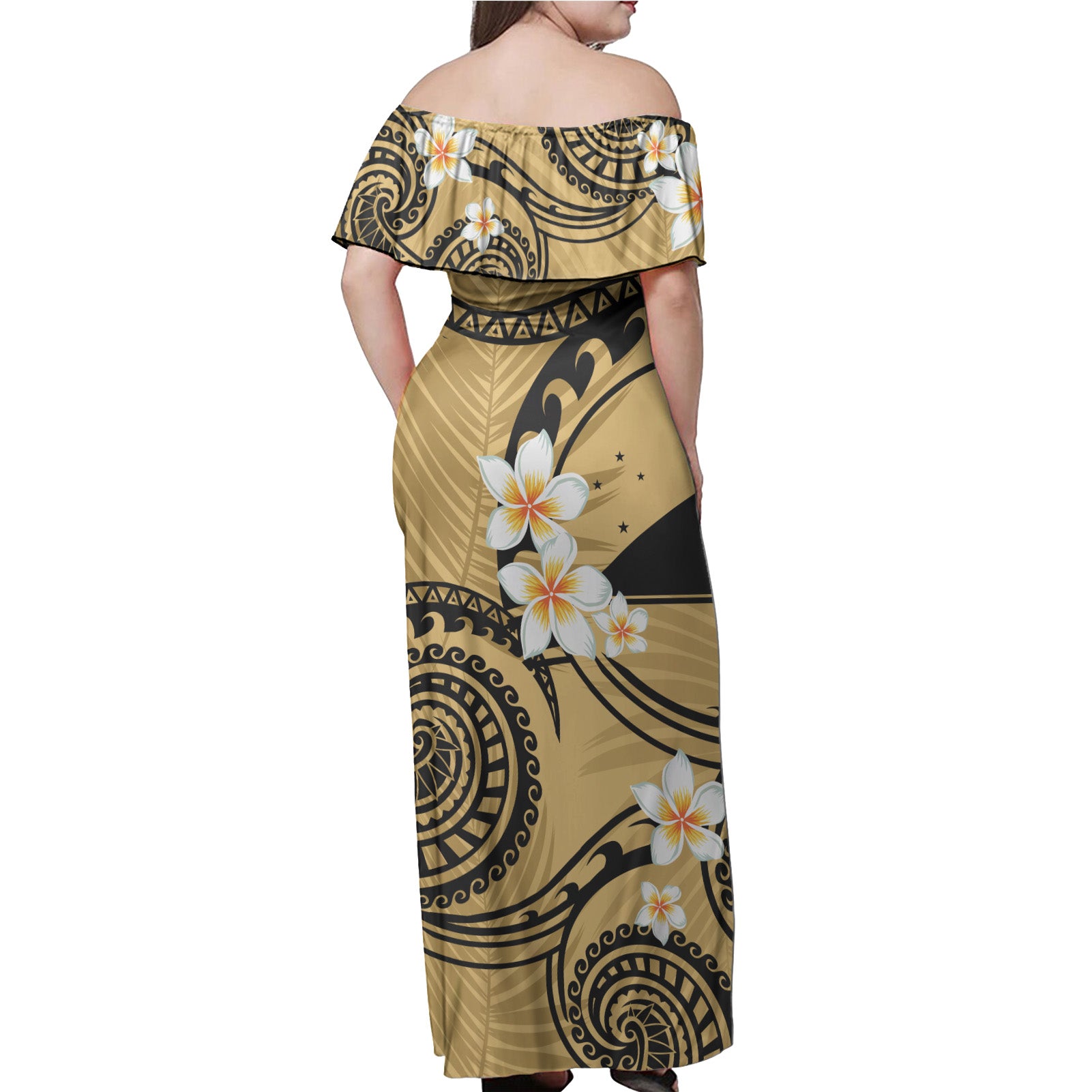 Tokelau Off Shoulder Long Dress Plumeria Flowers Tribal Motif Yellow Version