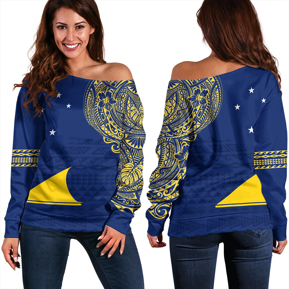 Tokelau Off Shoulder Sweatshirt Polynesian Flag With Coat Of Arms