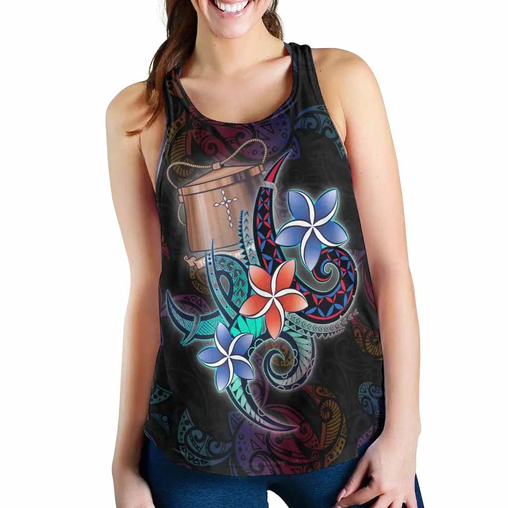 Tokelau Women Racerback Tank - Plumeria Flowers Style