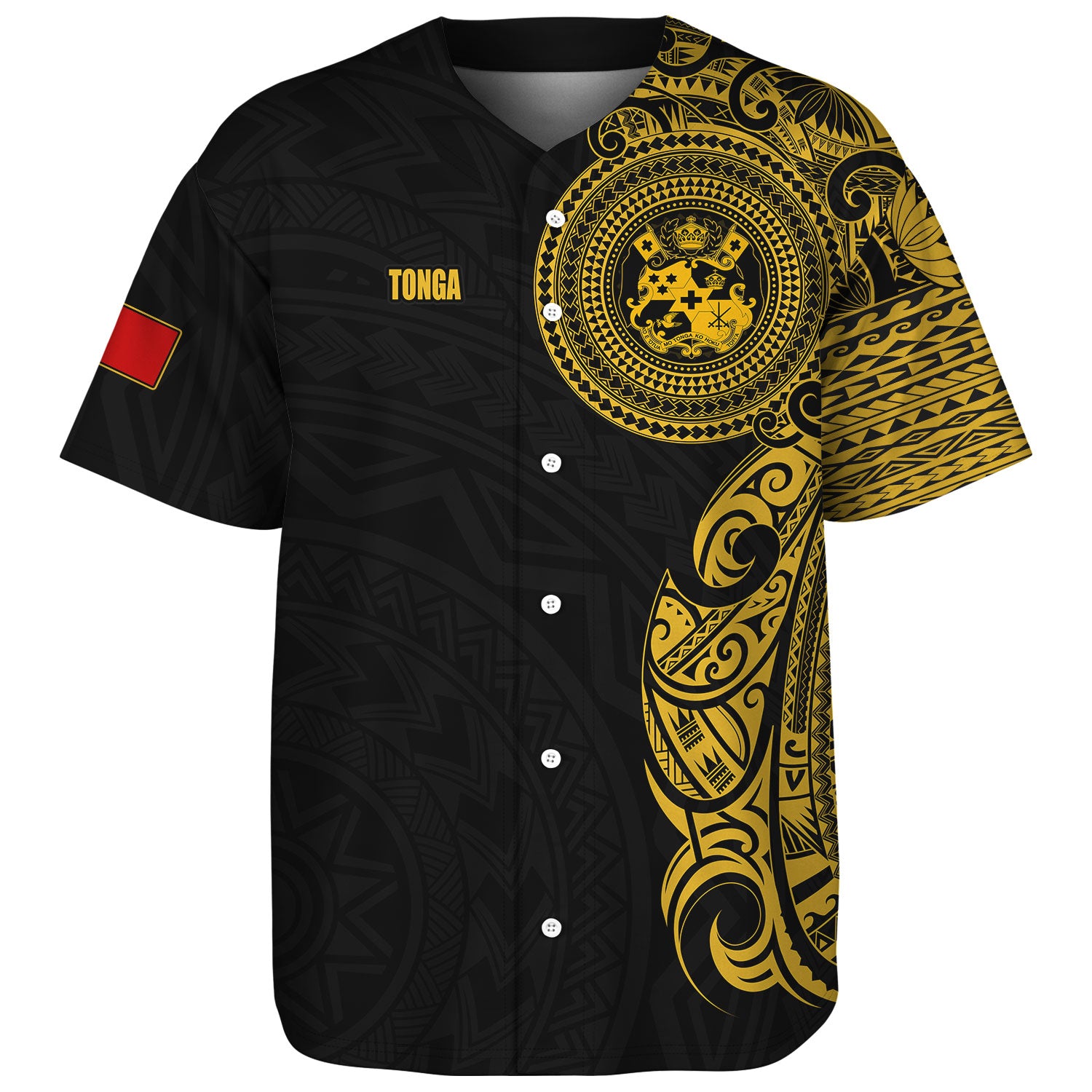 Tonga Baseball Shirt Custom Polynesian Half Sleeve Gold Tattoo With Seal Black