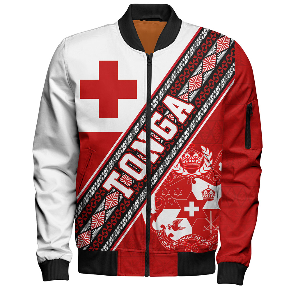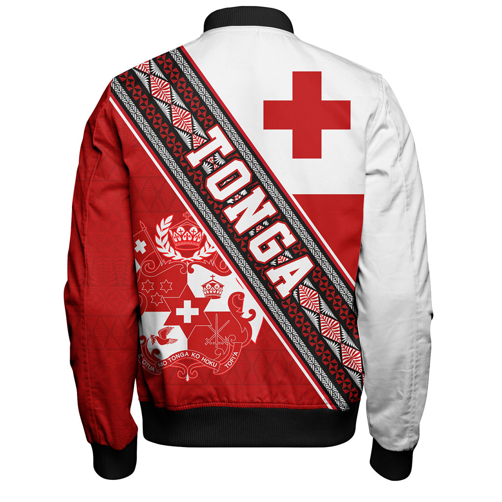 Tonga Bomber Jacket Ngatu Flag And Coat Of Arms