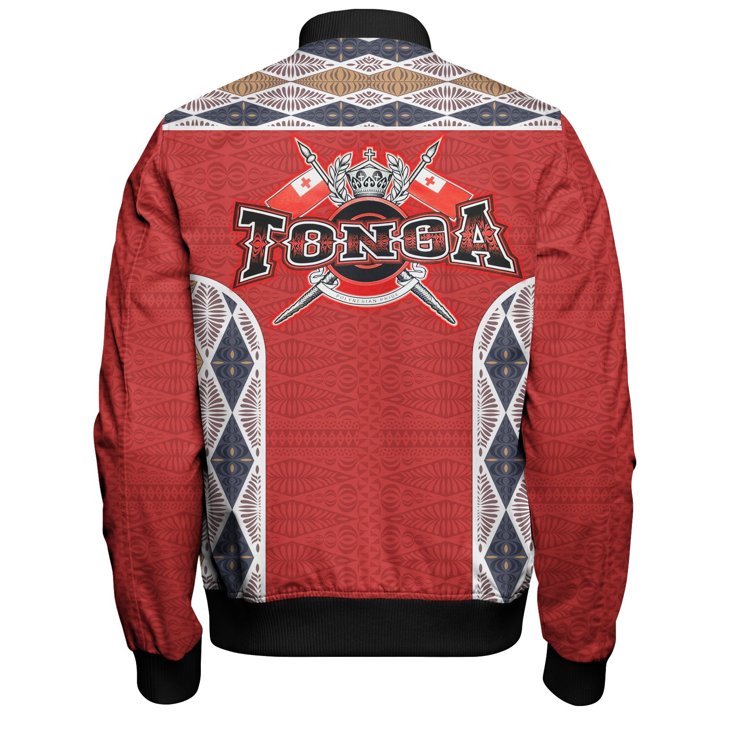 Tonga Bomber Jacket Tribal Pattern Coat Of Arms Of Tonga