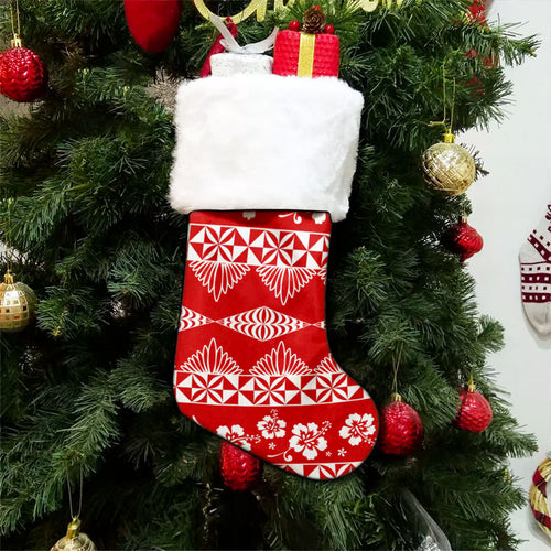 Tonga Christmas Stocking Ngatu Design Pattern Hibiscus