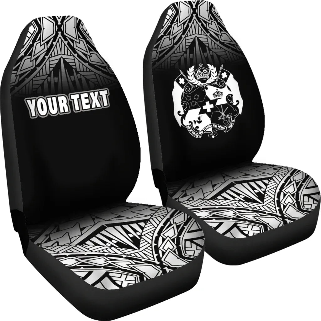 Tonga Custom Personalised Car Seat Covers - Tonga Coat Of Arms Polynesian Tattoo Fog Black