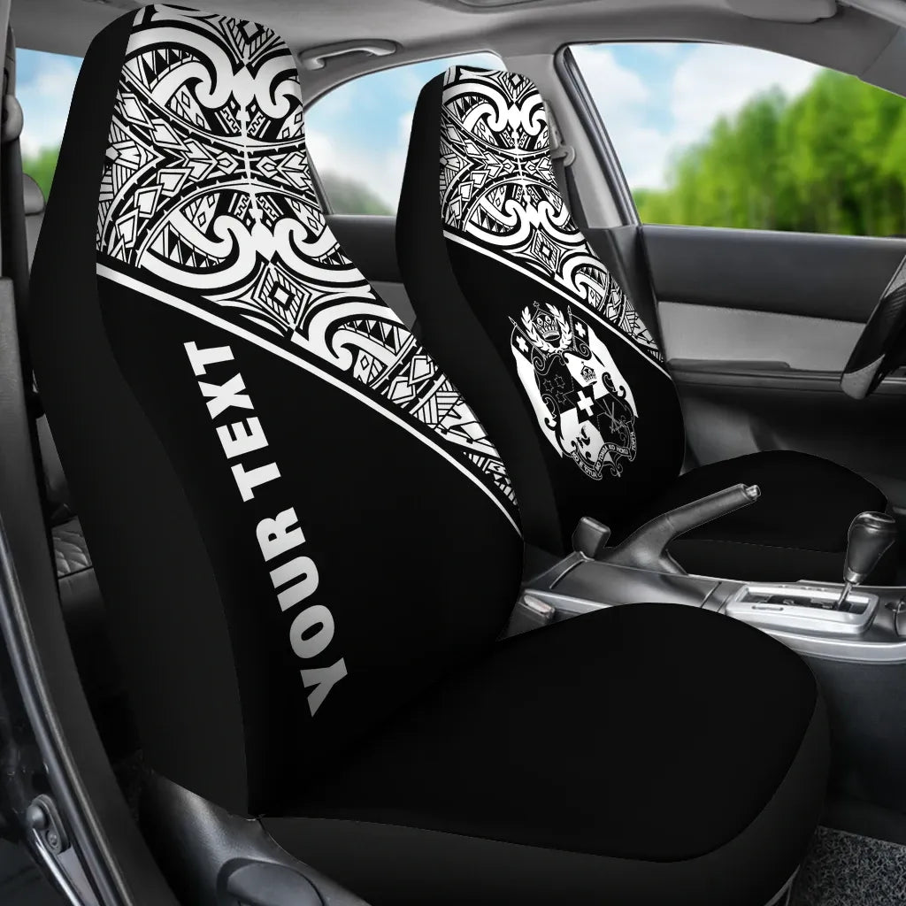 Tonga Custom Personalised Car Seat Covers - Tonga Coat Of Arms Polynesian White Curve