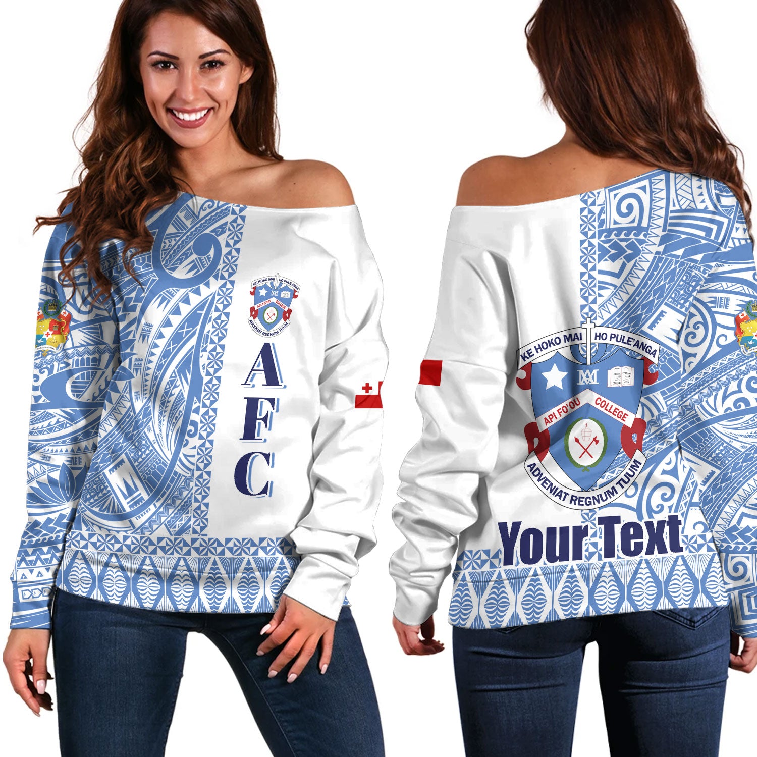 Tonga Custom Personalised Off Shoulder Sweatshirt Apifo'ou College Simple Ngatu Patterns