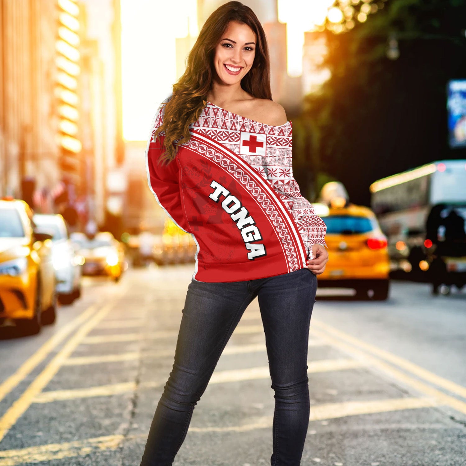 Tonga Custom Personalised Off Shoulder Sweatshirt Tongan Ngatu Pattern Curve Style
