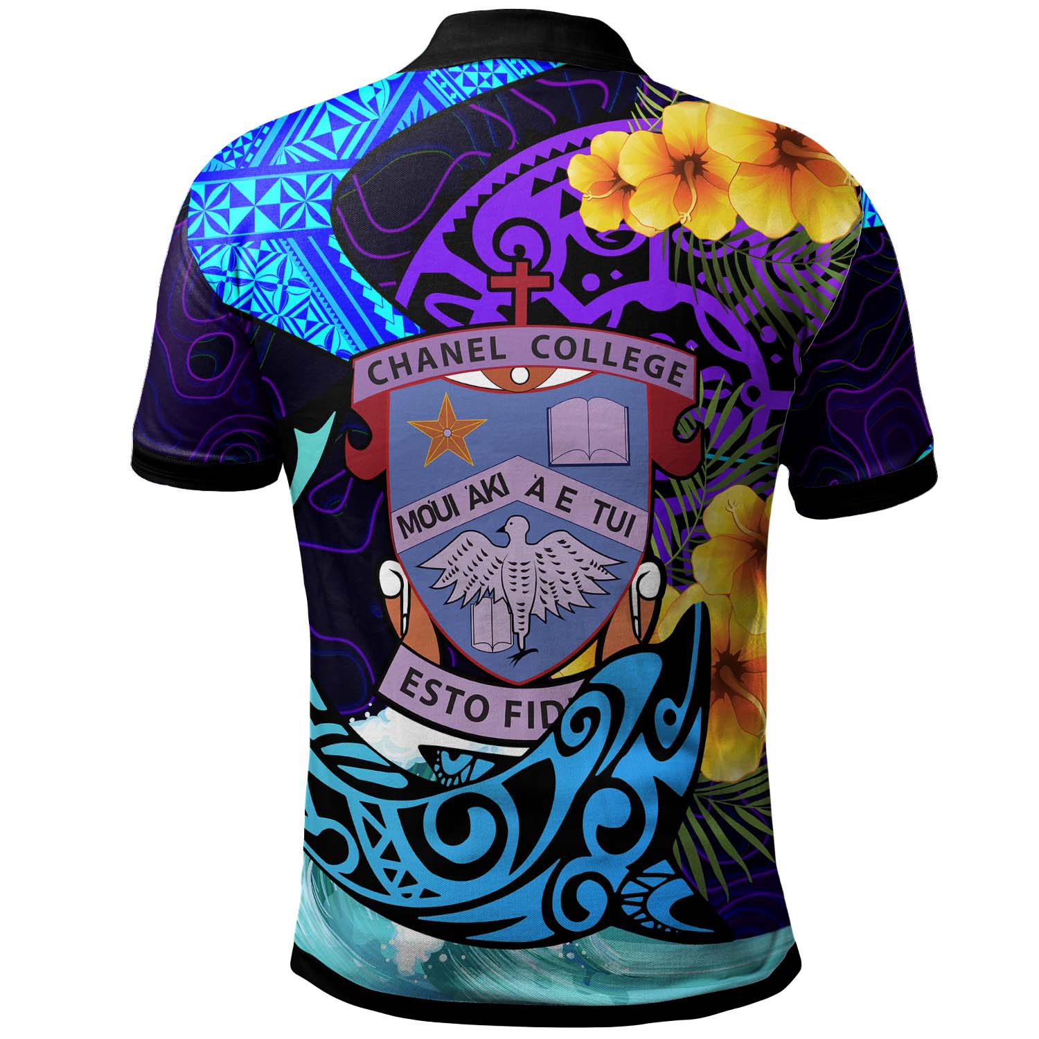 Tonga Custom Polo Shirt - Chanel College with Polynesian Pattern Style and Flower