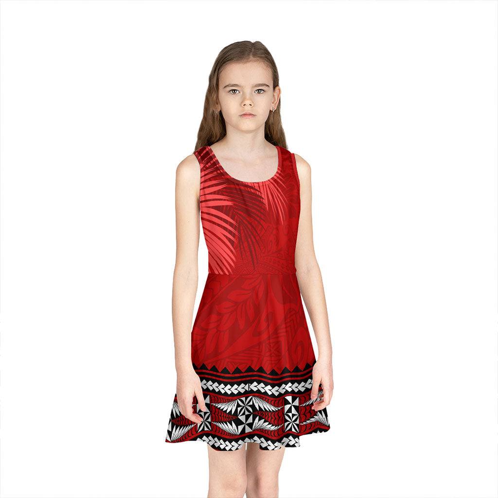 Tonga Girls Sleeveless Sundress Polynesian Fabric Leaves