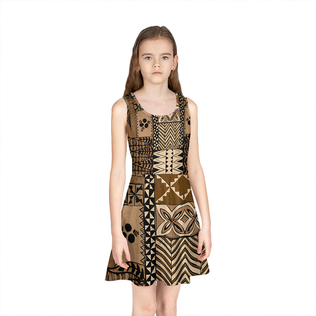 - Our Girls Sleeveless Sundress made of 95% polyester and 5% spandex manufactures high-quality thermal-transfer printed products and keeps you comfortable, cool, and dry while you work and play.