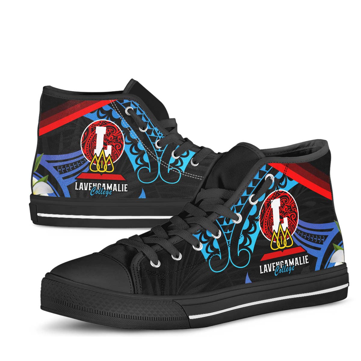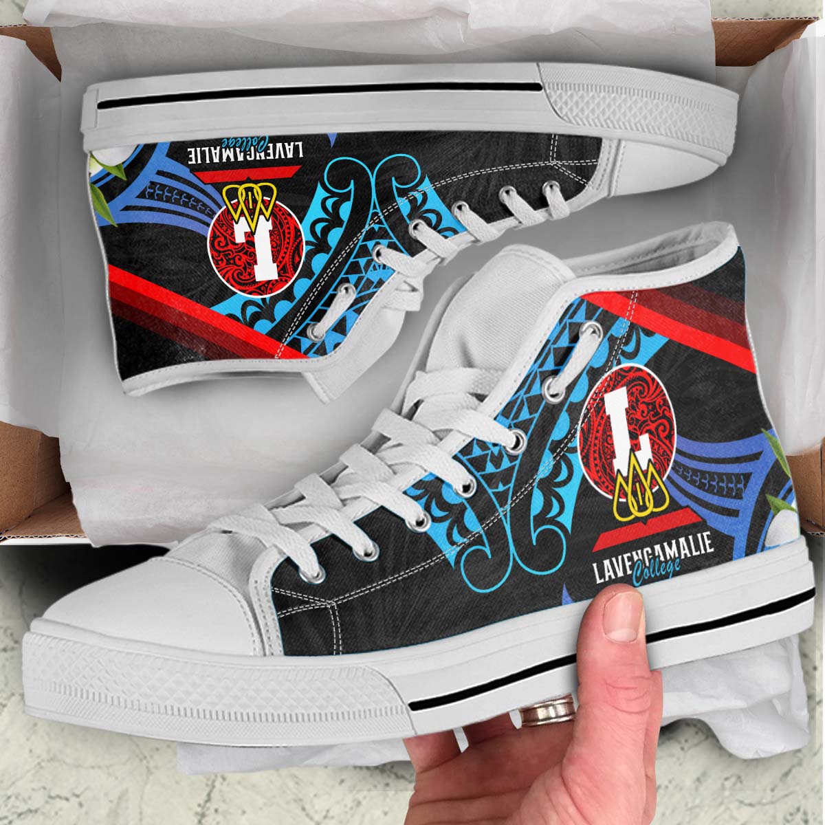 Tonga High Top Shoes - Lavengamalie College with Polynesian Patterns and Plumeria Flower