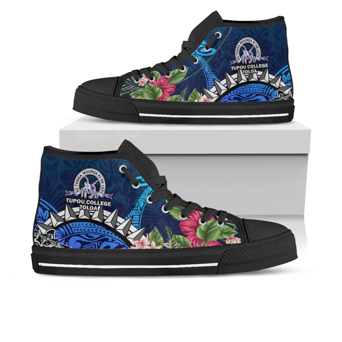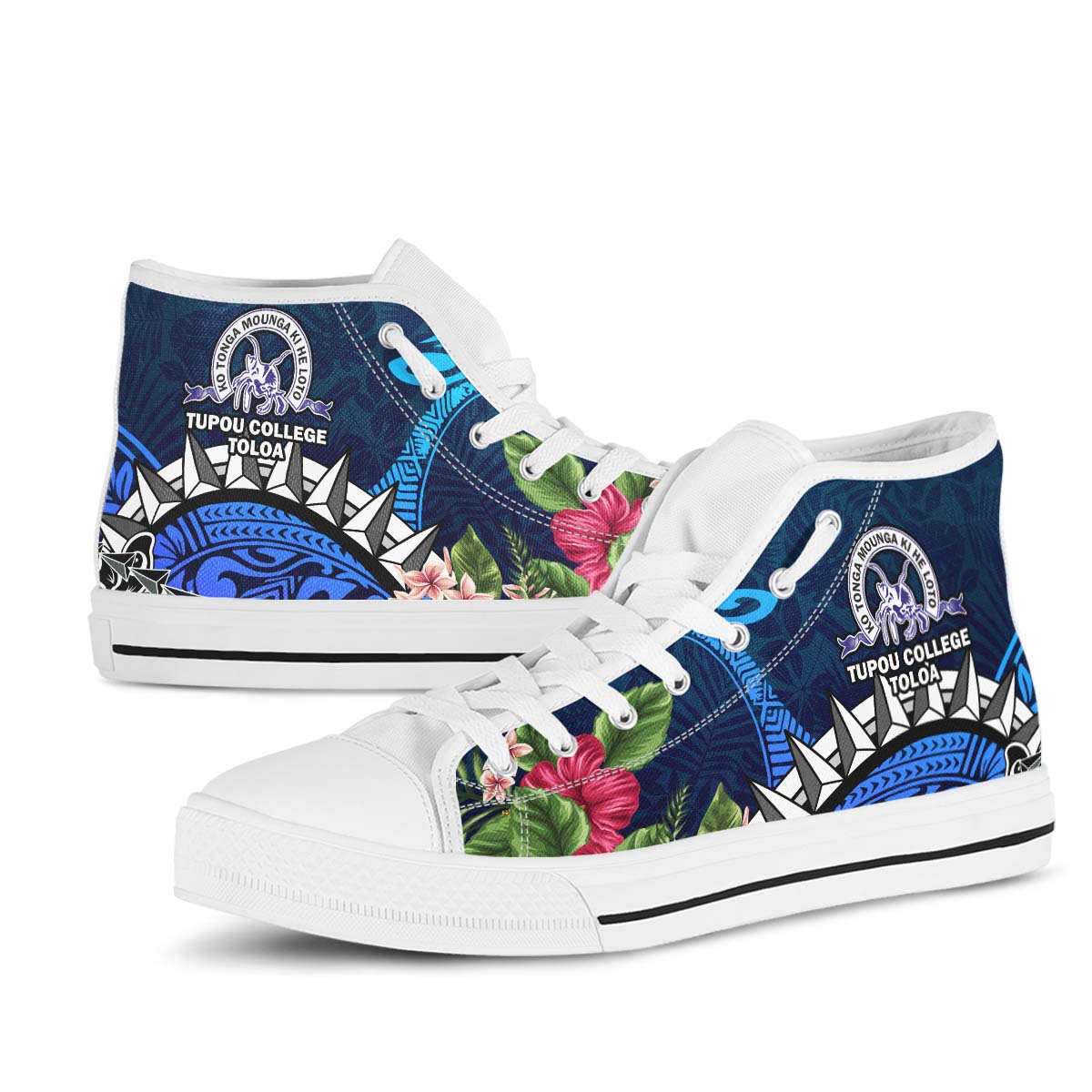 Tonga High Top Shoes - Tupou College Polynesian Tonga Pattern with Flower
