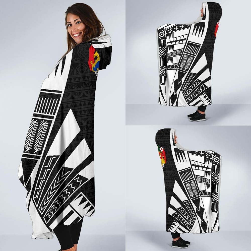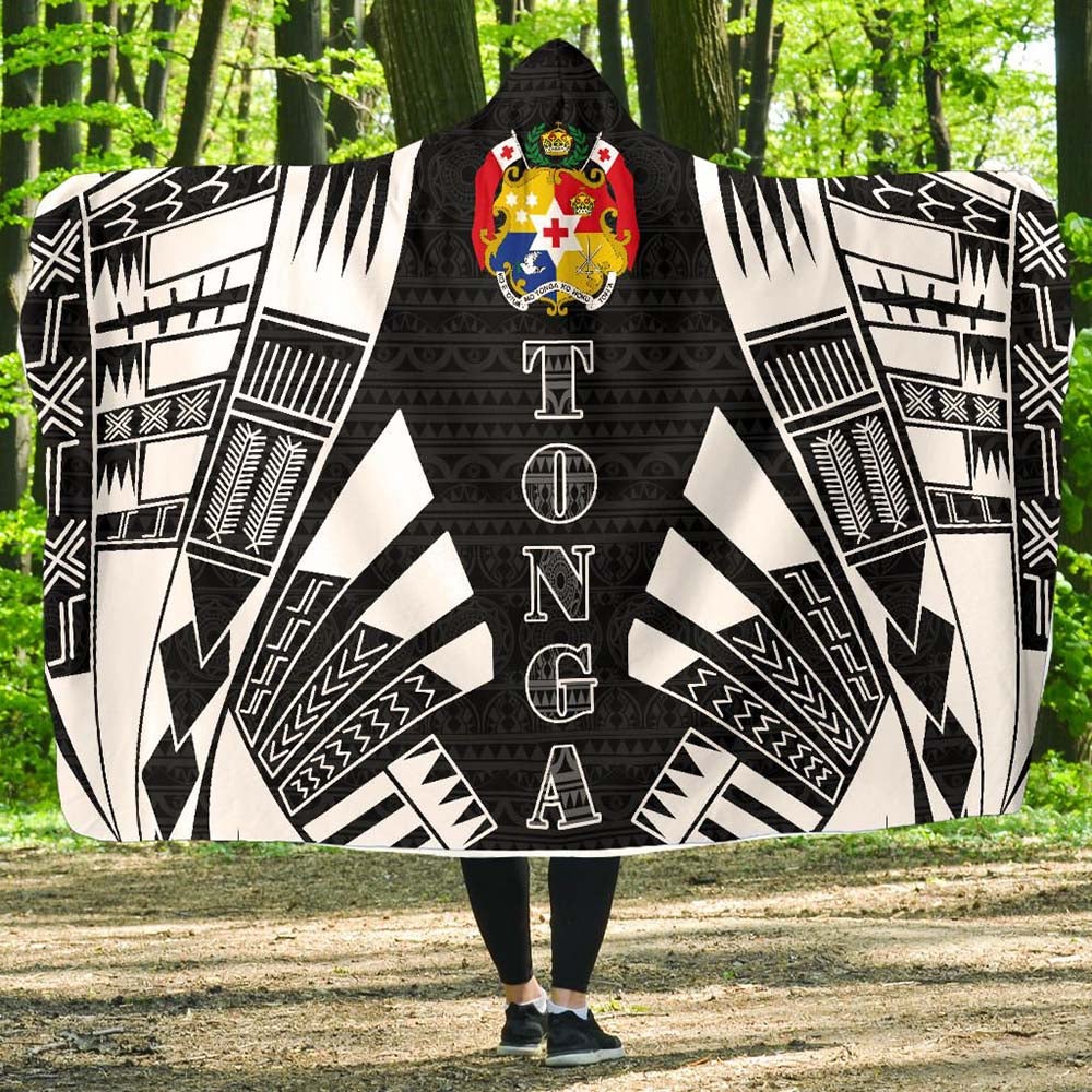 Tonga Hooded Blanket - Polynesian Tattoo Black
