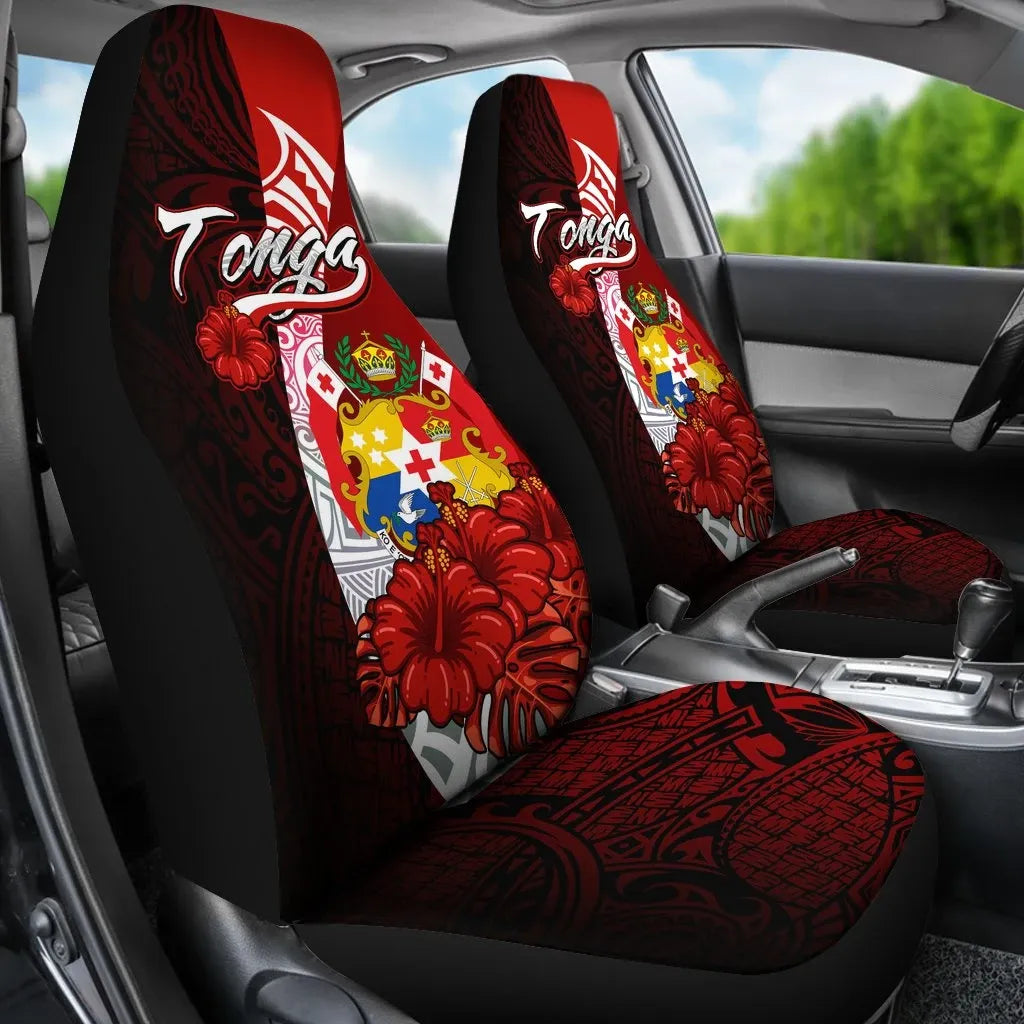 Tonga Polynesian Car Seat Covers - Coat Of Arm With Hibiscus