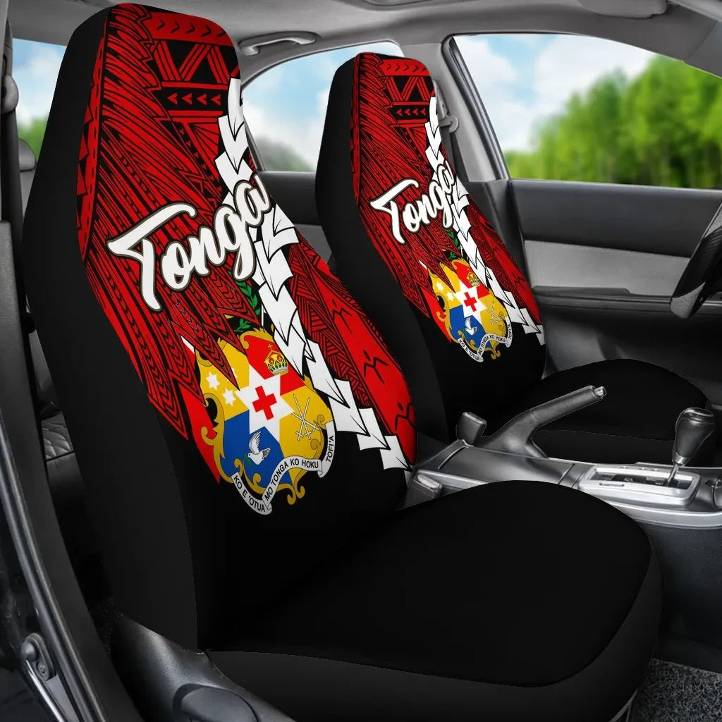 Tonga Polynesian Car Seat Covers - Tribal Wave Tattoo Flag Color