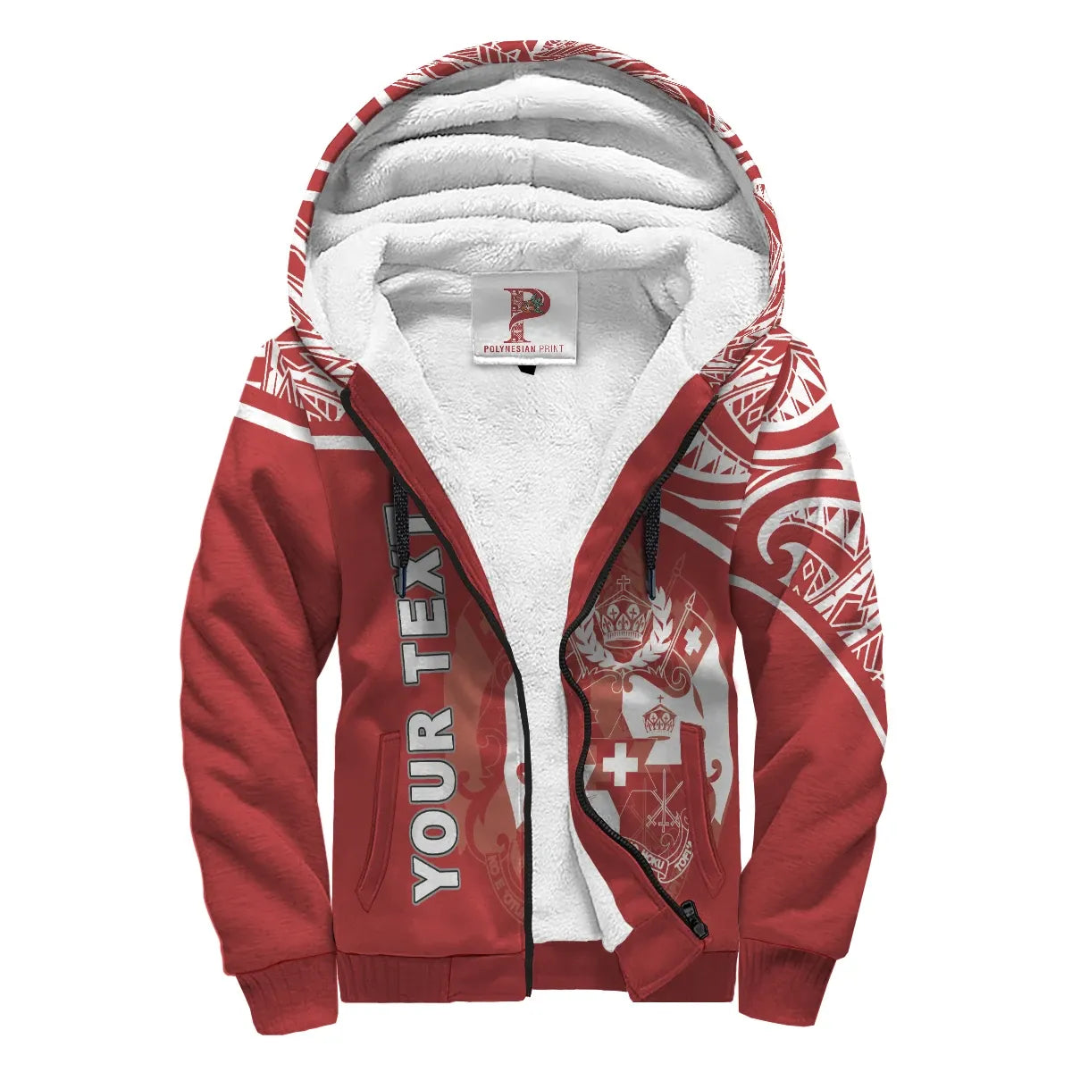 Tonga Polynesian Personalised Custom Sherpa Hoodie - Red Curve Version