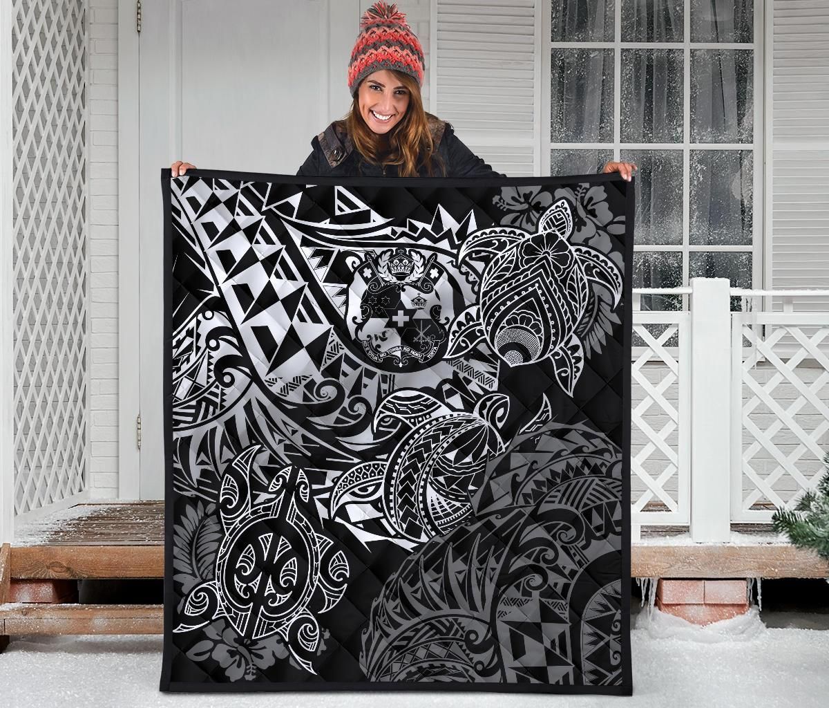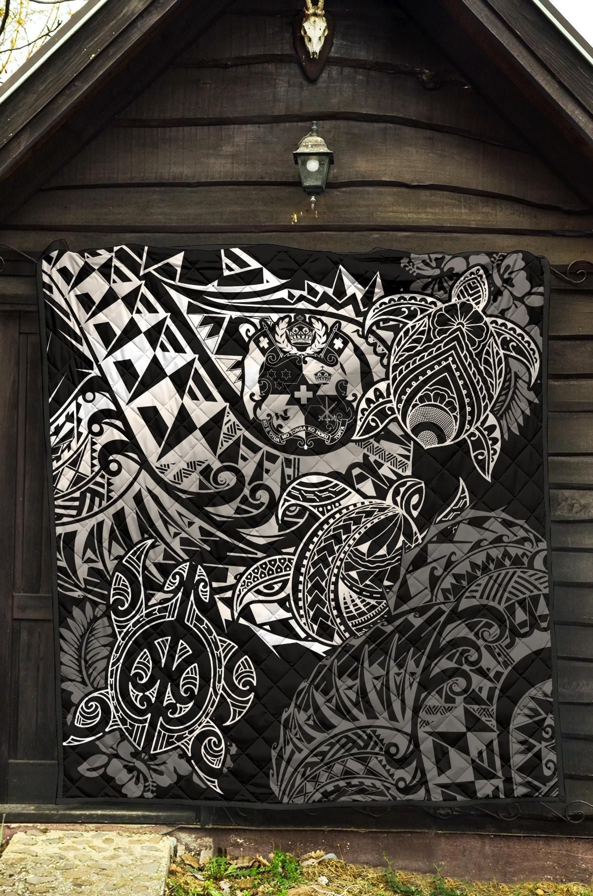 Tonga Polynesian Premium Quilt - White Turtle Flowing