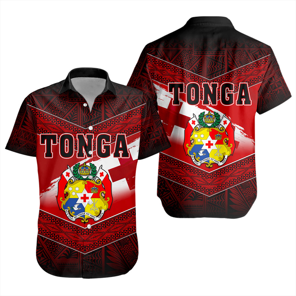 Tonga Short Sleeve Shirt Tapa Ngatu Nesian Island Matching Flag Grunge