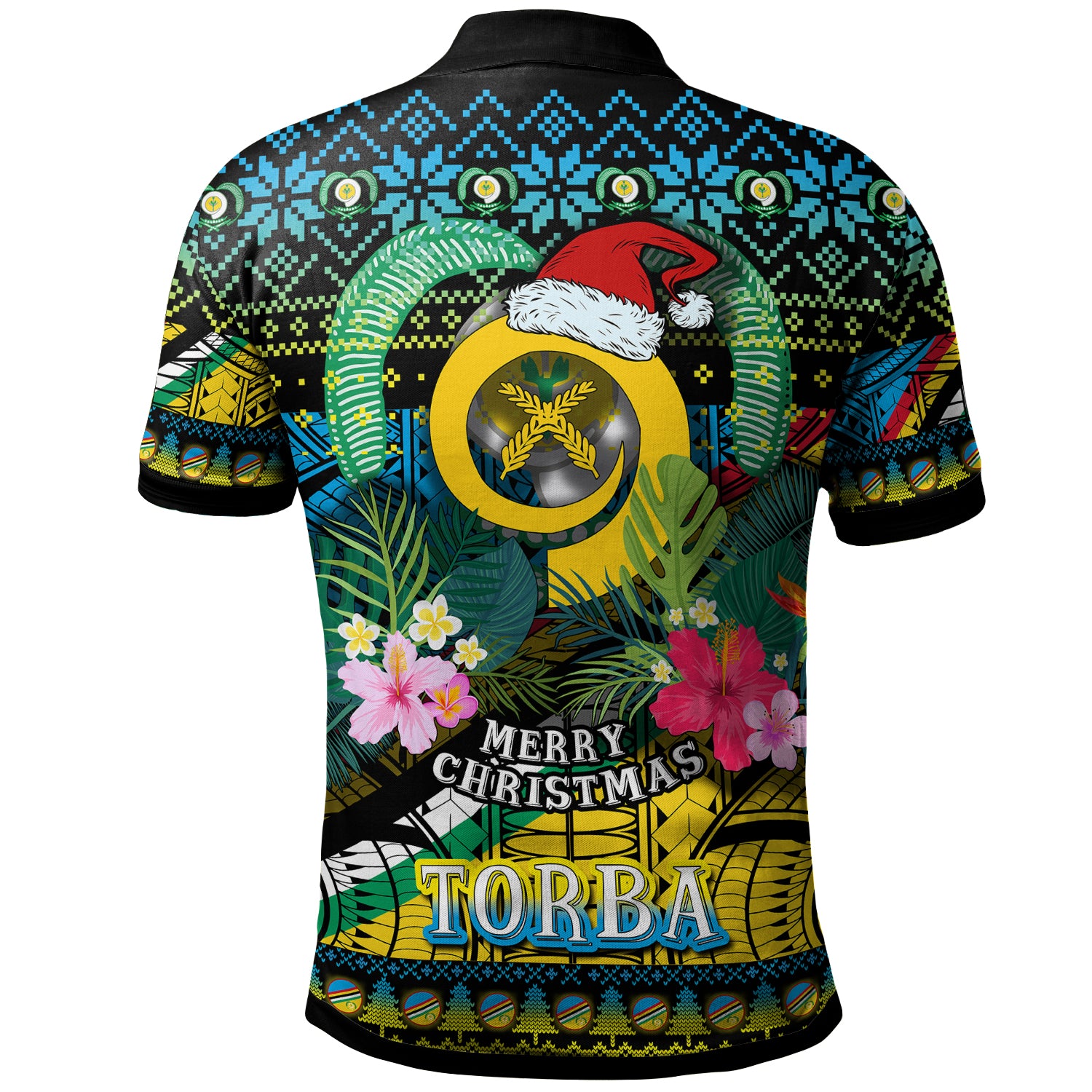Torba Polynesian Christmas Polo Shirt - Custom Torba Vanuatu Coat of Arms Christmas Hat Polynesian Patterns Polo Shirt