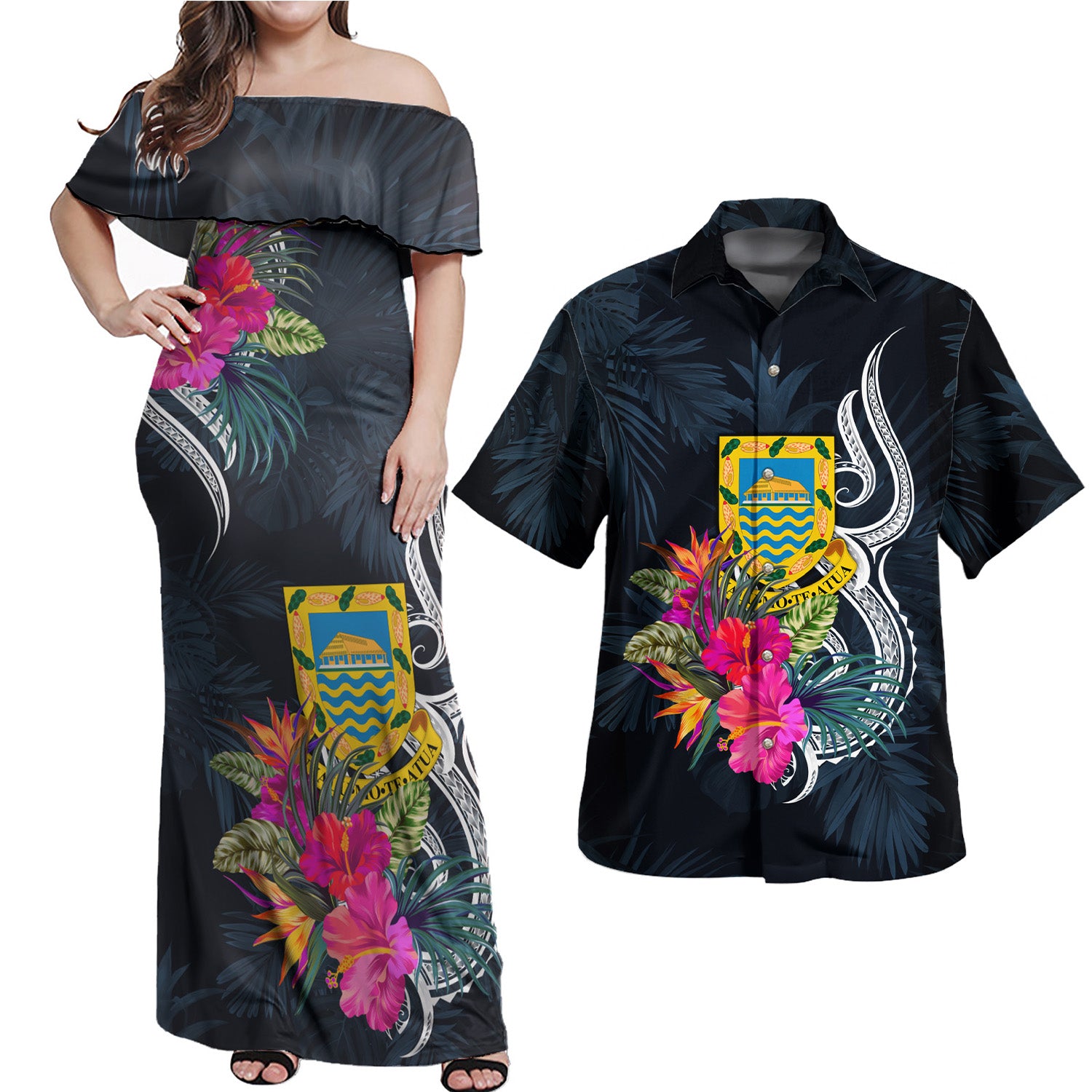 Tuvalu Combo Off Shoulder Long Dress And Shirt Tropical Flower