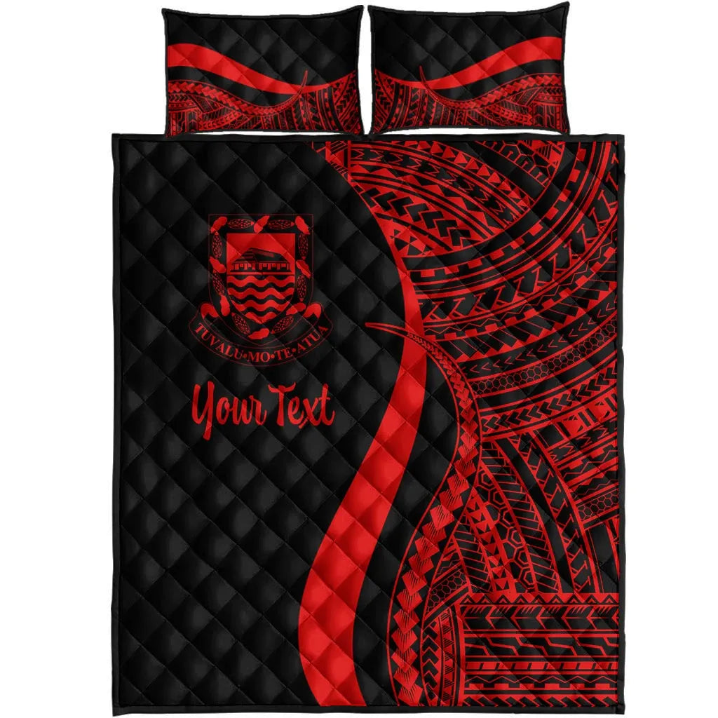 Tuvalu Custom Personalised Quilt Bed Set - Red Polynesian Tentacle Tribal Pattern