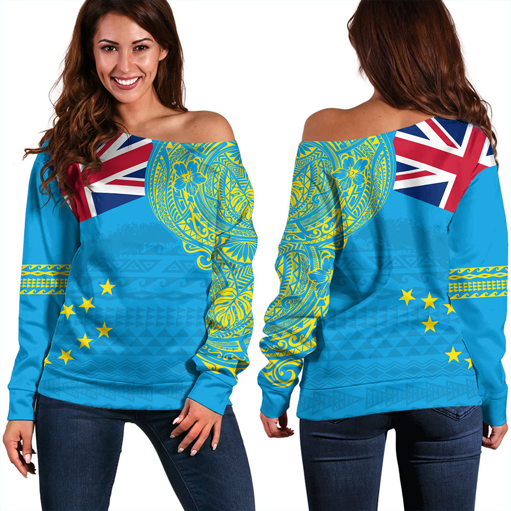 Tuvalu Off Shoulder Sweatshirt Polynesian Flag With Coat Of Arms