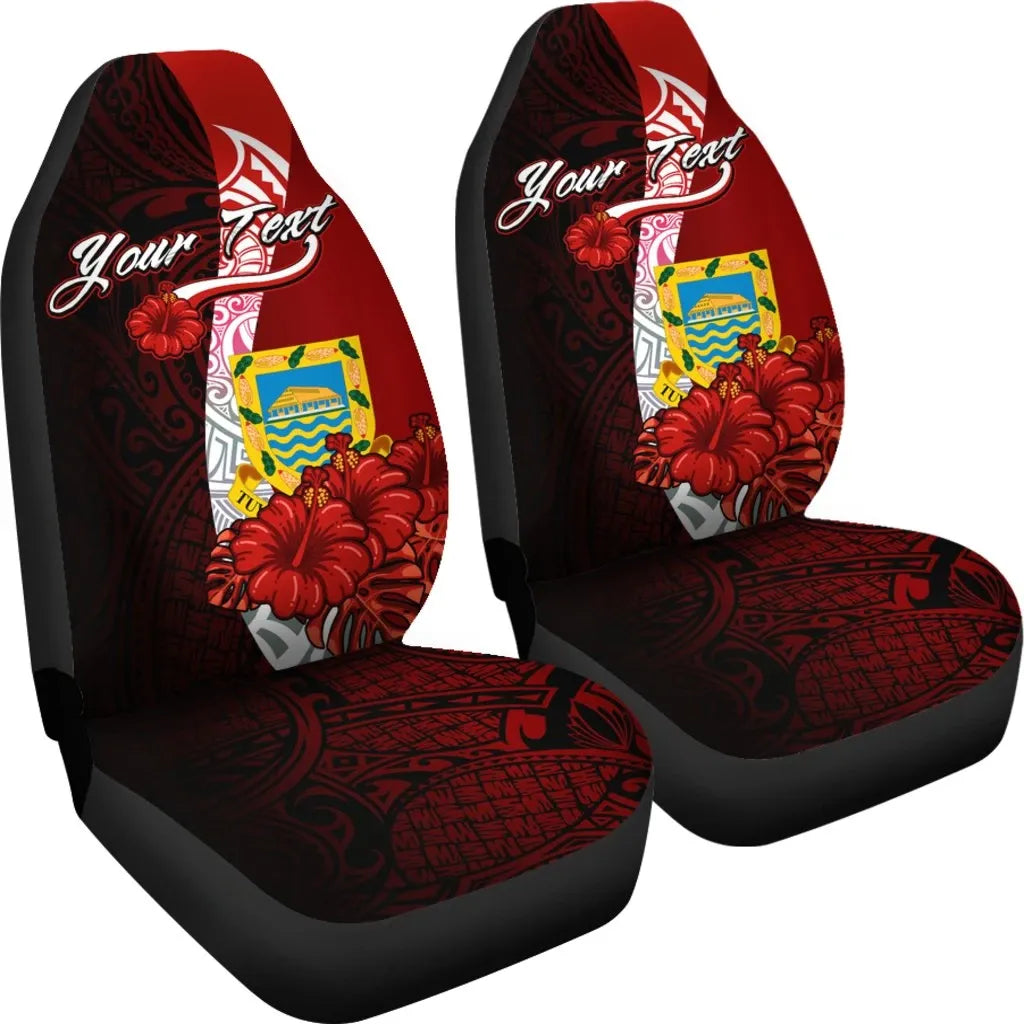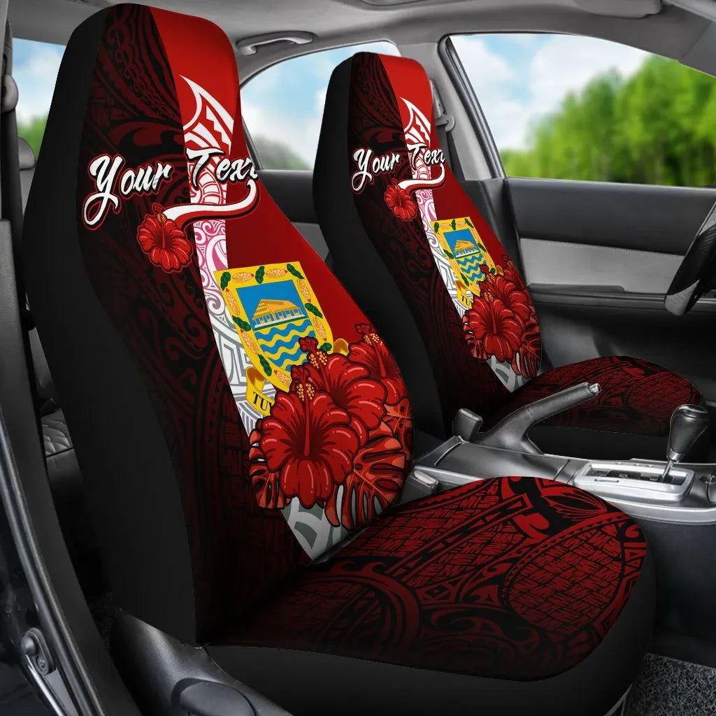 Tuvalu Polynesian Custom Personalised Car Seat Covers - Coat Of Arm With Hibiscus